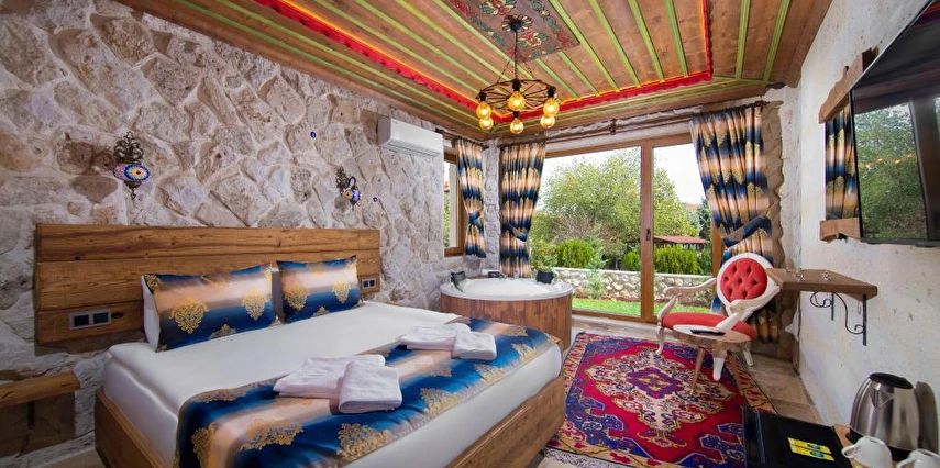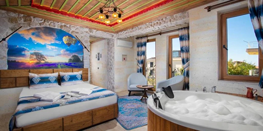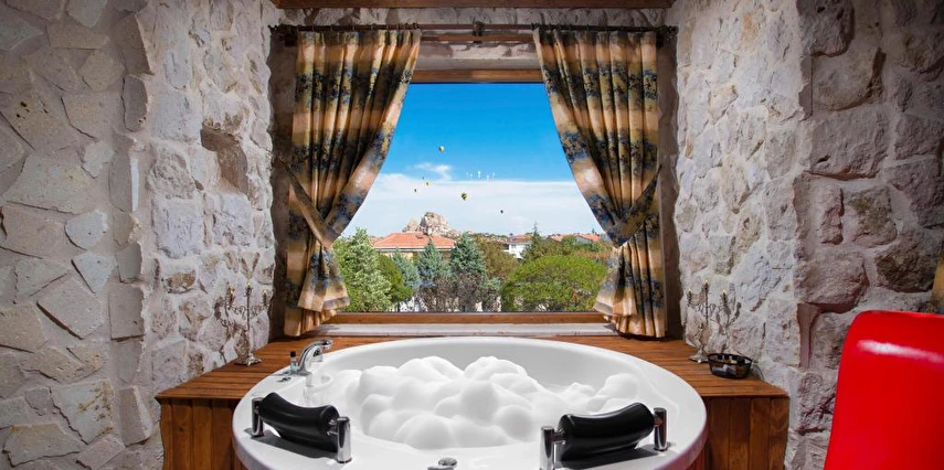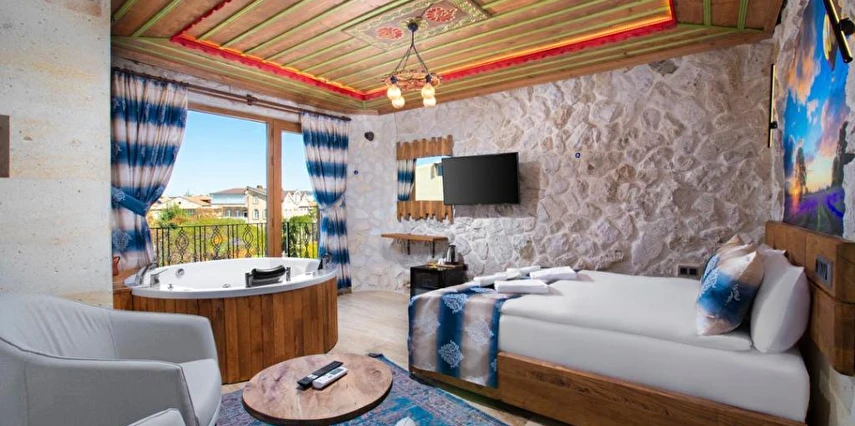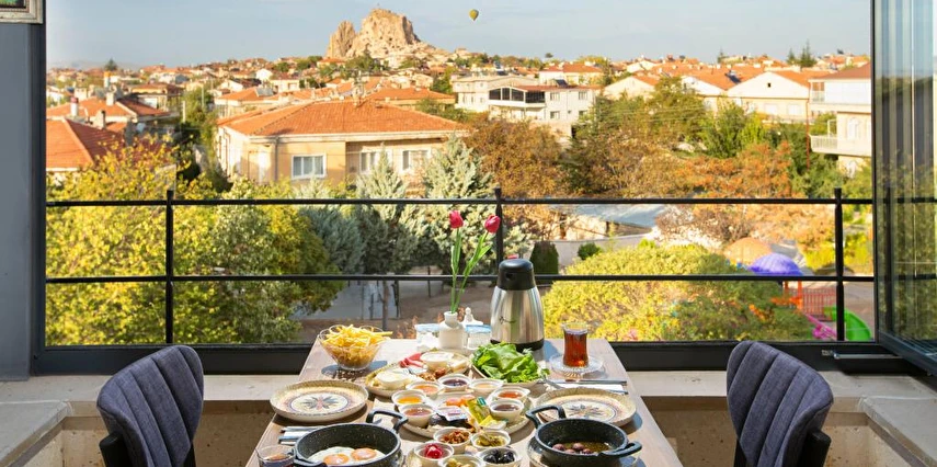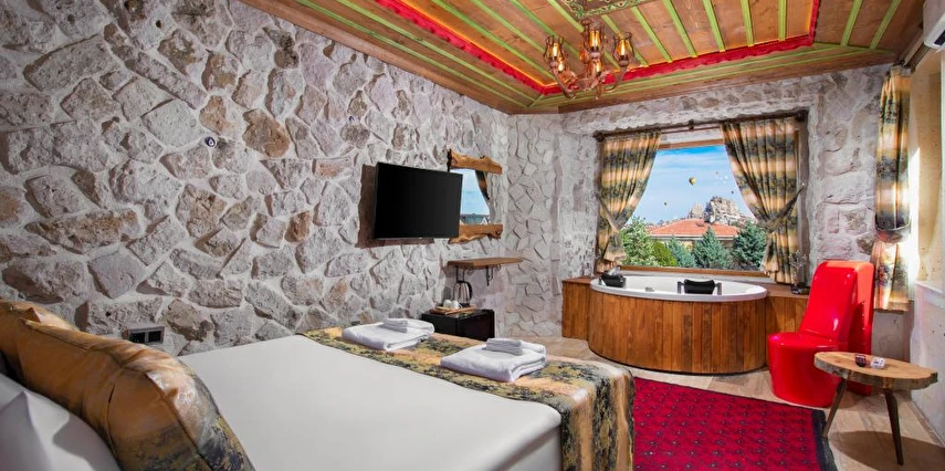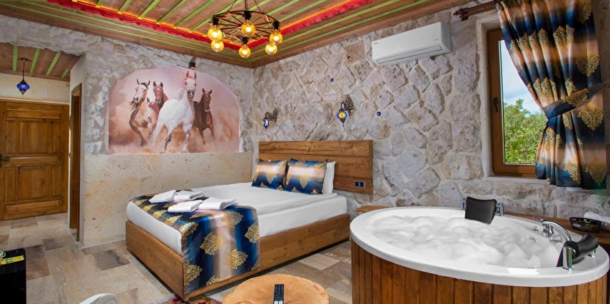 Fiesta Stone House, tarihi dokusu ve büyüleyici mimarisiyle Kapadokya'nın ruhunu yansıtarak, her köşesinde özenle seçilmiş tasarım detayları ve sıcak bir atmosfer sunuyor. Göz alıcı taş duvarlar, zarif aydınlatmalar ve doğal malzemelerle oluşturulmuş iç mekanları, konaklamanızı daha da özel kılarken, konforlu odaları ve samimi ortamı, sabahları gözlerinizi Uçhisar Kalesi'nin muhteşem manzarasına açarak yeni bir masalın başlangıcını yaşamanıza olanak tanıyor. Sakin ve dingin bir ortam arayanlar için mükemmel bir tercih olan bu konaklama yeri, romantik bir kaçış noktası olarak da tasarlandı. Kapadokya'nın eşsiz manzaraları ve tarihi dokusu ile dolu bir bu özel anlarınızın keyfini çıkartabilirsiniz. Bunun yanında doğanın eşsiz güzellikleri arasında adrenalin dolu aktivitelerle dolu bir tatil de sizi bekliyor! ATV, jeep, balon ve safari turları ile unutulmaz anılar biriktirin. Kapadokya'nın büyüleyici manzaraları eşliğinde bu ücretli aktiviteleri deneyimlemek, tatilinizi daha da özel kılacak. Fiesta Stone House, hem konforlu konaklama imkânları hem de hayranlık uyandıran manzarasıyla, unutulmaz anılar biriktirmeniz için sizi bekliyor.