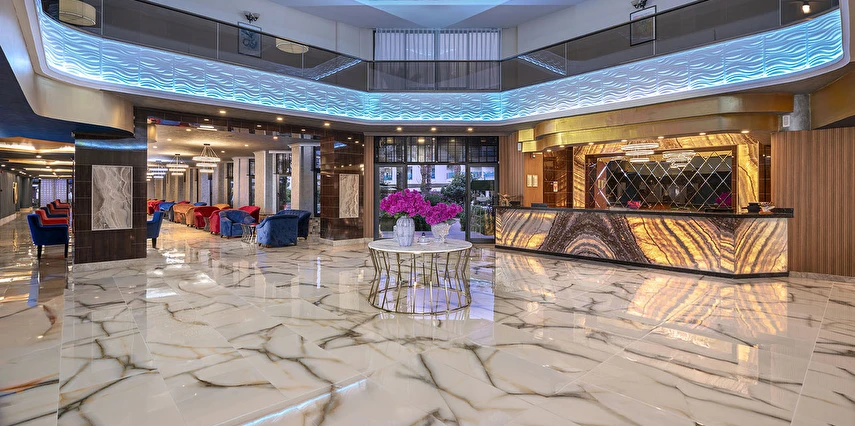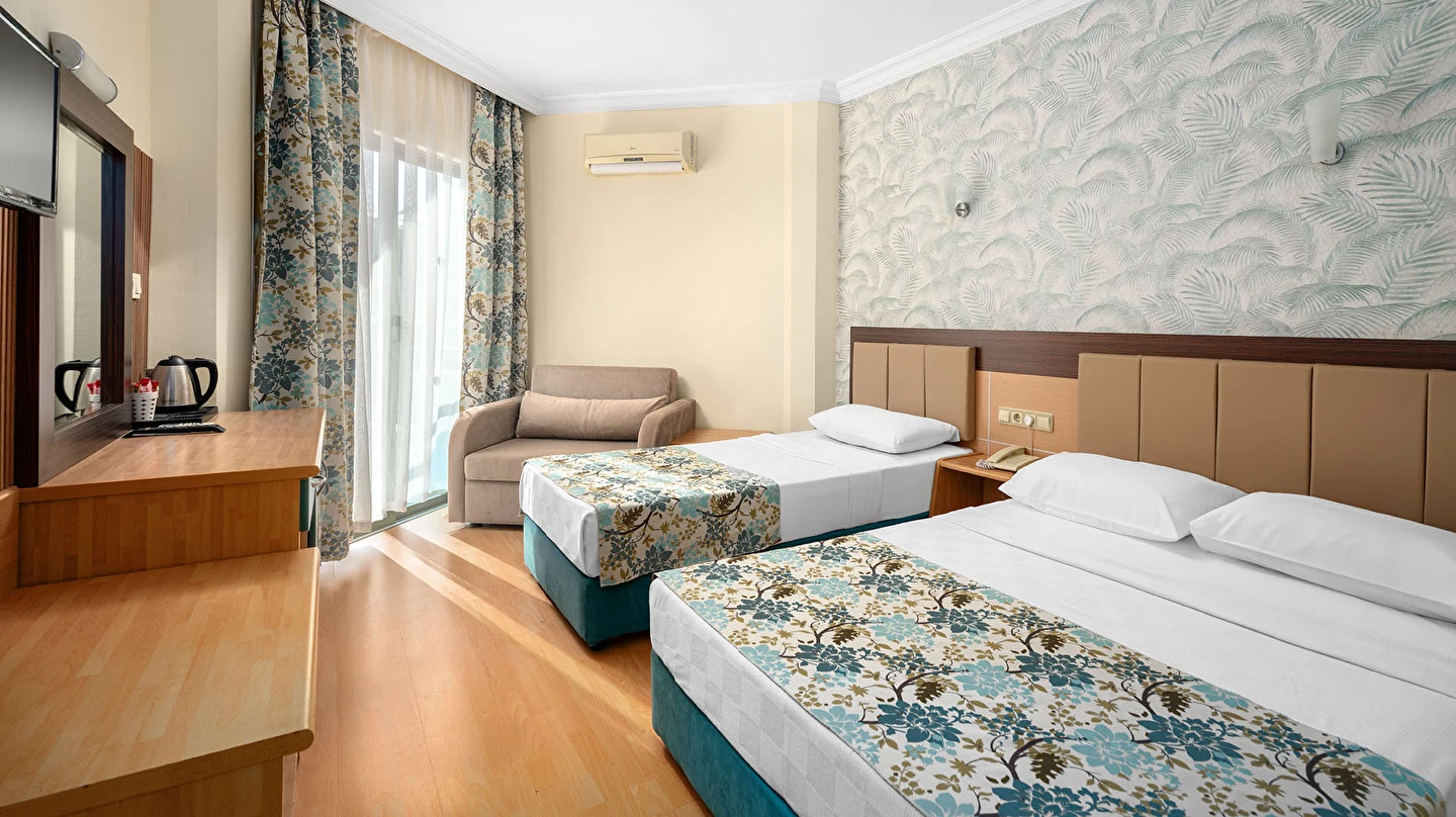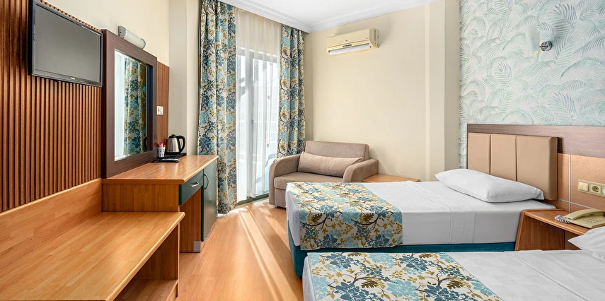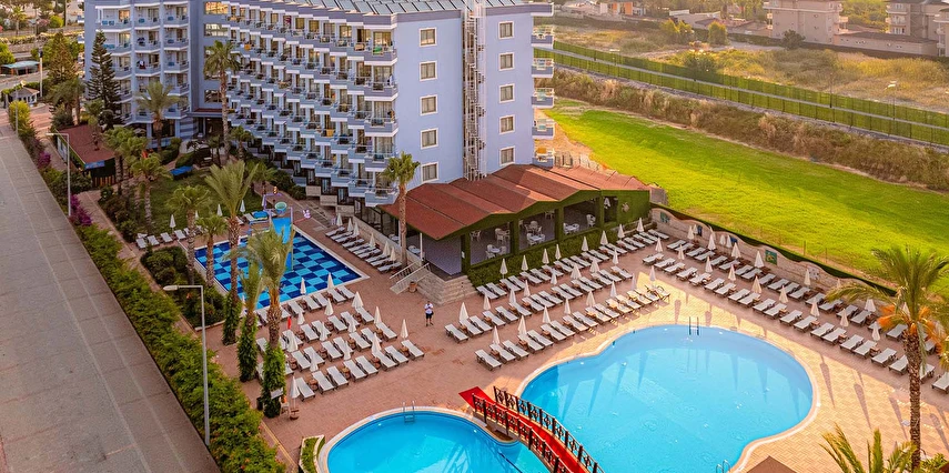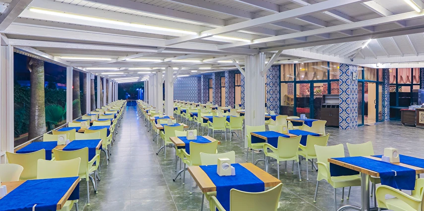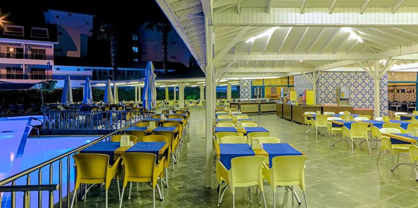 Sabah kahvaltısı öğle ve akşam yemekleri açık büfe olup tesisin belirlemiş olduğu markalar dahilinde yerli alkollü rakı, votka, cin, şarap, bira,viski, bazı likör, bazı kokteyller ve alkolsüz içecekler 10:00-23:00 saatleri arasında ücretsizdir. Premium içecekler, şampanya, ithal likör, ithal içecekler, tüm şişe içkiler, taze sıkılmış meyve suları, Disco’daki ve gece 23:00 dan sonra alınacak tüm içecekler ücretlidir.