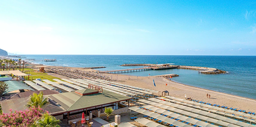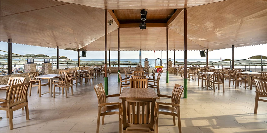 Sahilde 1 adet sahil-snack bar (ücretsiz) ve 2 ayrı duş alanı ve soyunma kabinleri bulunmaktadır. Şezlong, güneş şemsiyesi (plajda gölgelik) ve minder hem sahil de hem de havuz kenarında mevcut olup, ücretsizdir.