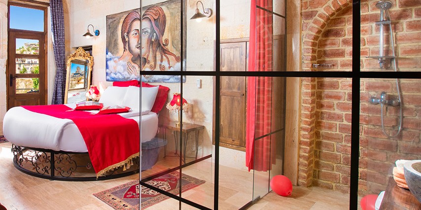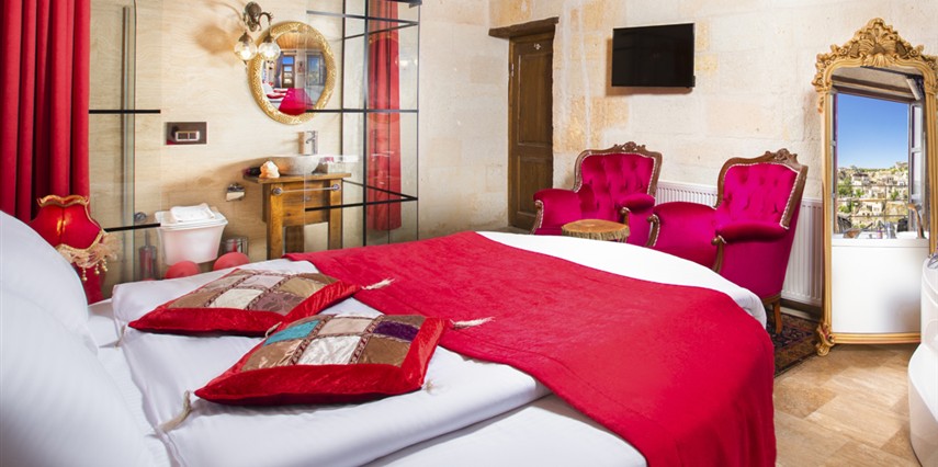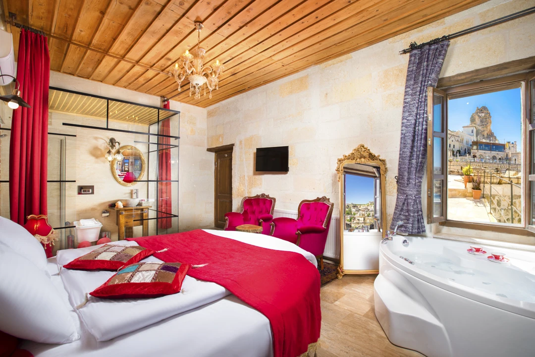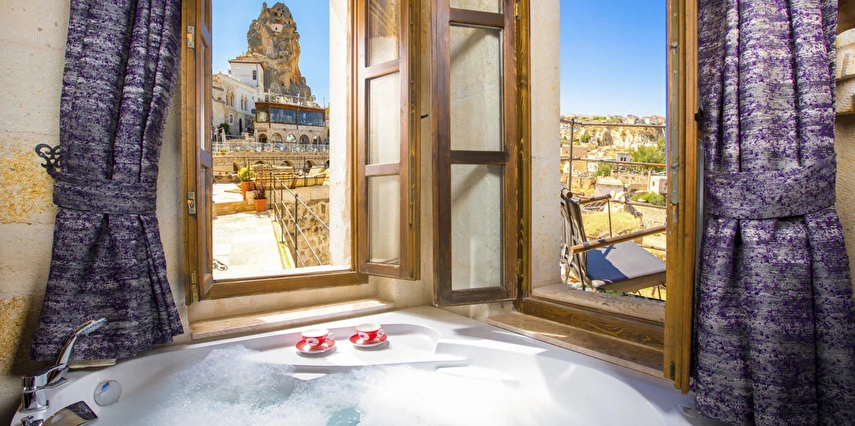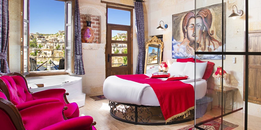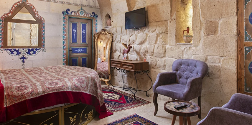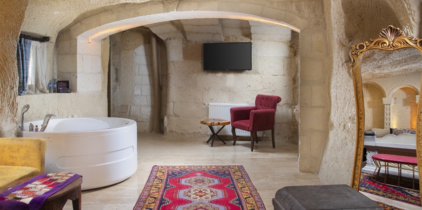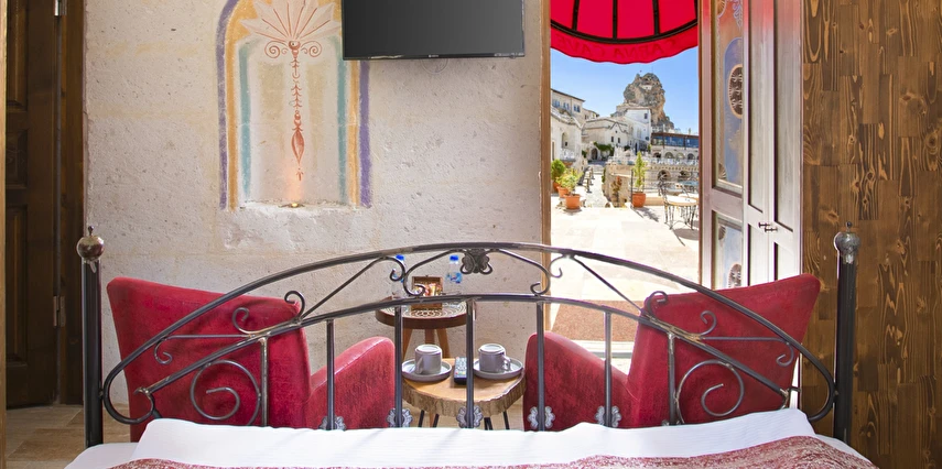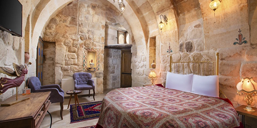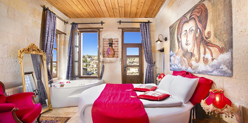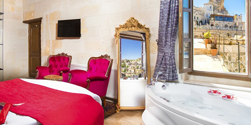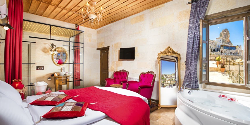 Otelimiz deluxe, junior suite ,jakuzili suit ve superior suite konseptleriyle 4 çeşit odaya sahiptir. Kapadokya’nın merkezi noktalarından birinde yer alan otelimiz çeşitli vadilere, turistik bölgelere ve gezi alanlarına ulaşımda kolaylığı sizlere sunmaktayız. Otelimiz Ortahisar Kalesi ve şehir merkezine 5 dakika uzaklıktadır. Otelimizin Ürgüp'e ve Göreme'ye uzaklığı 5 km, köy merkezine uzaklığı 100m'dir. Nevşehir Havaalanı 45 km, Kayseri Havaalanı 80 km uzaklıktadır.