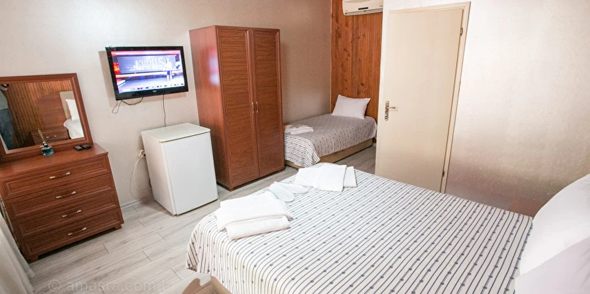 Pansiyon odaları balkon veya terasla donatılmış olup; ücretsiz Wi-Fi, özel banyo ve temel mobilyalarla konforlu bir konaklama sunar. Bazı odalarda klima ve mini buzdolabı gibi olanaklar bulunur.