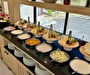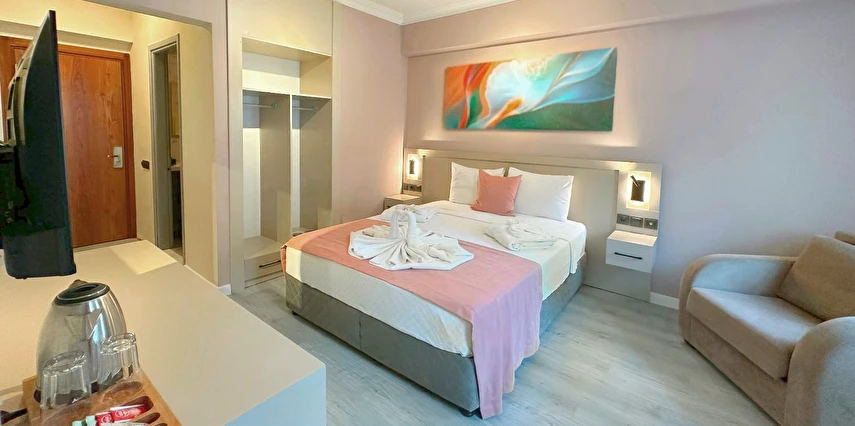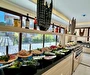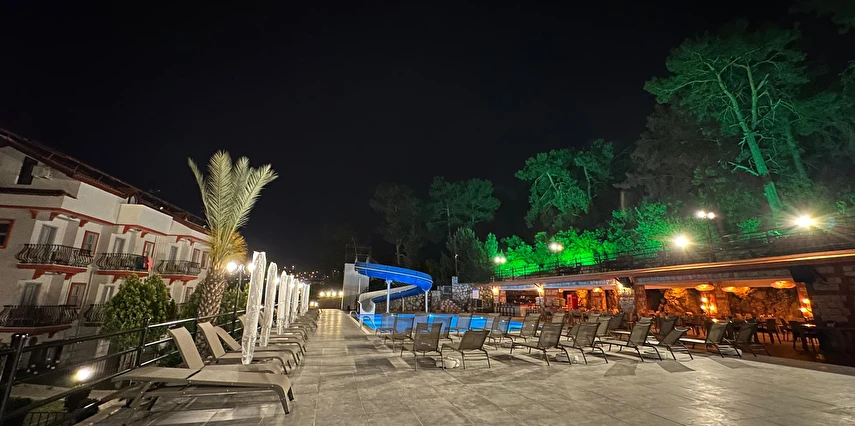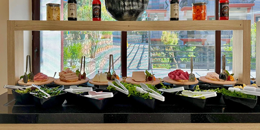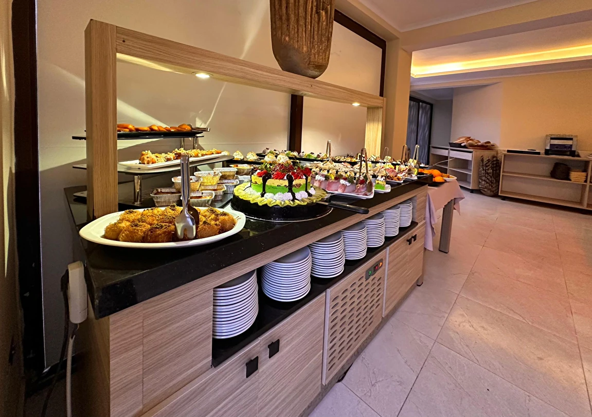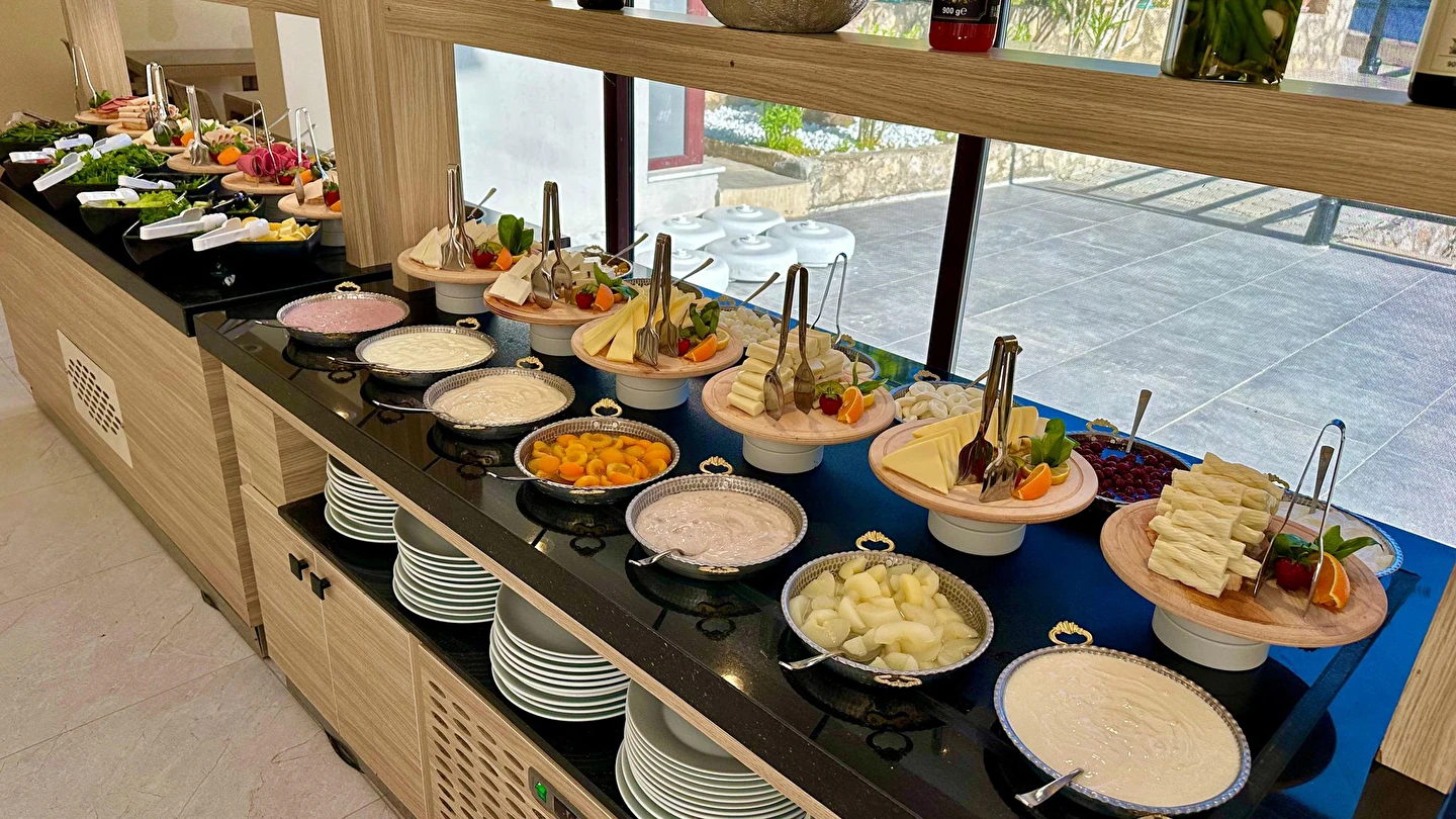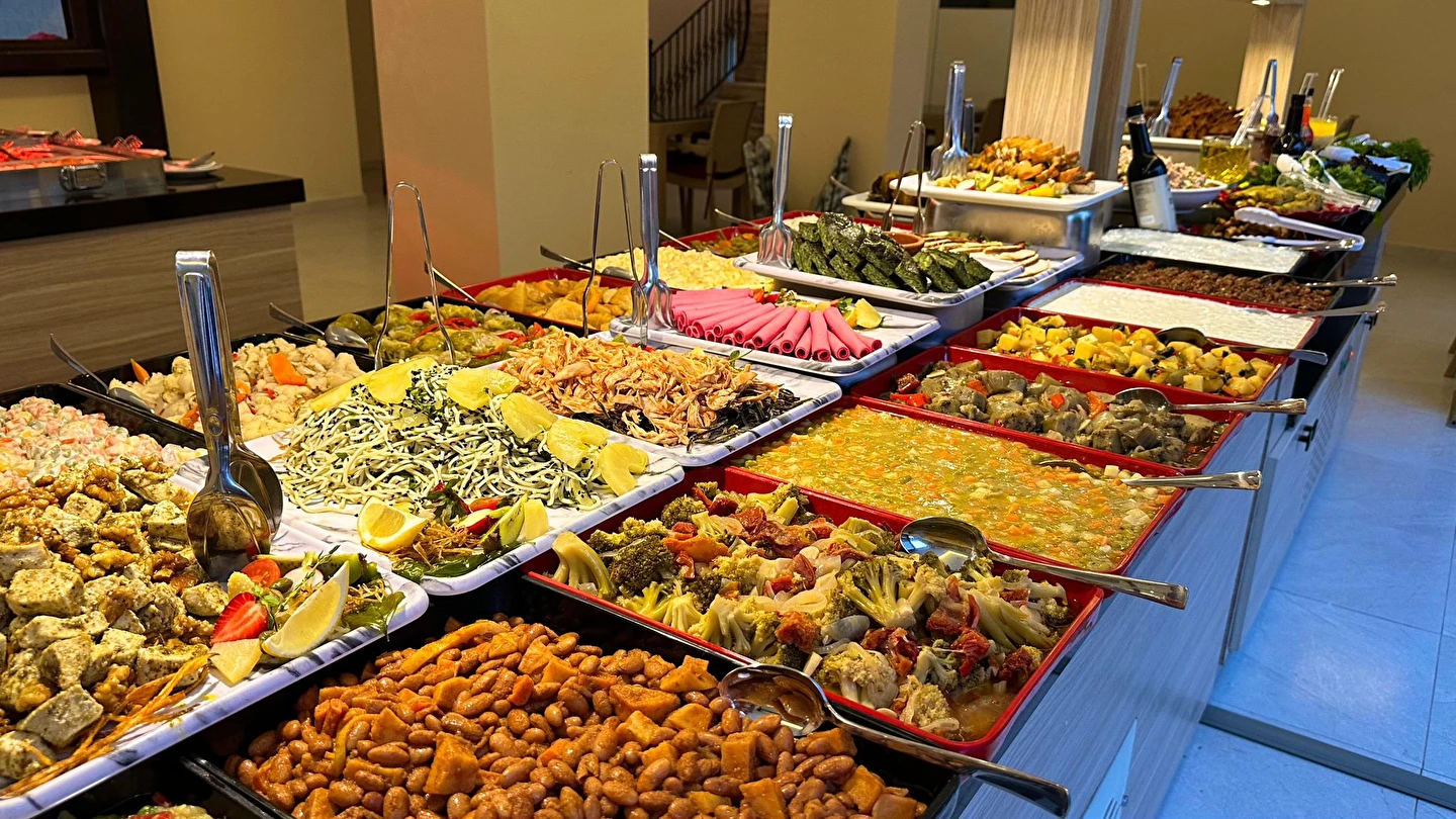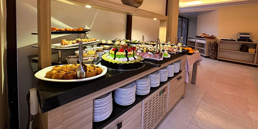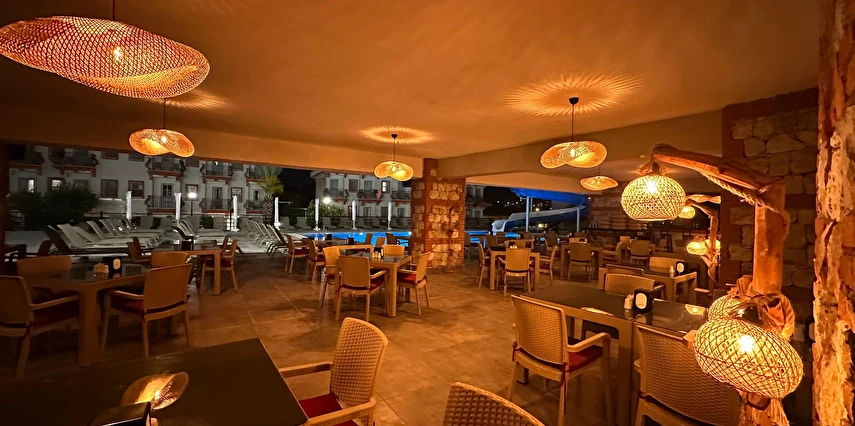 Sabah-öğle ve akşam yemekleri açık büfe olup, tesisin belirlemiş olmuş olduğu markalar dahilinde yerli alkollü ve alkolsüz içecekler 10:00 ile 23:00 saatleri arasında ücretsizdir. 23:00 dan itibaren kullanımlar extra ücretlendirmeye tabiidir . Tesiste yerli alkollü içecek olarak rakı-vodka-gin-bira ve şarap sunulmaktadır. Alkolsüz yerli içecekler olarak cola-fanta-sprıte-soda-tonıc-çay-kahve-süt ve konsantre meyve suları sunulmaktadır. Yabancı alkollü içecekler - kapalı kutu ve şişe alkollü alkolsüz içecekler -Türk kahvesi ve taze sıkılmış meyve suları extra ücretlendirmeye tabiidir.