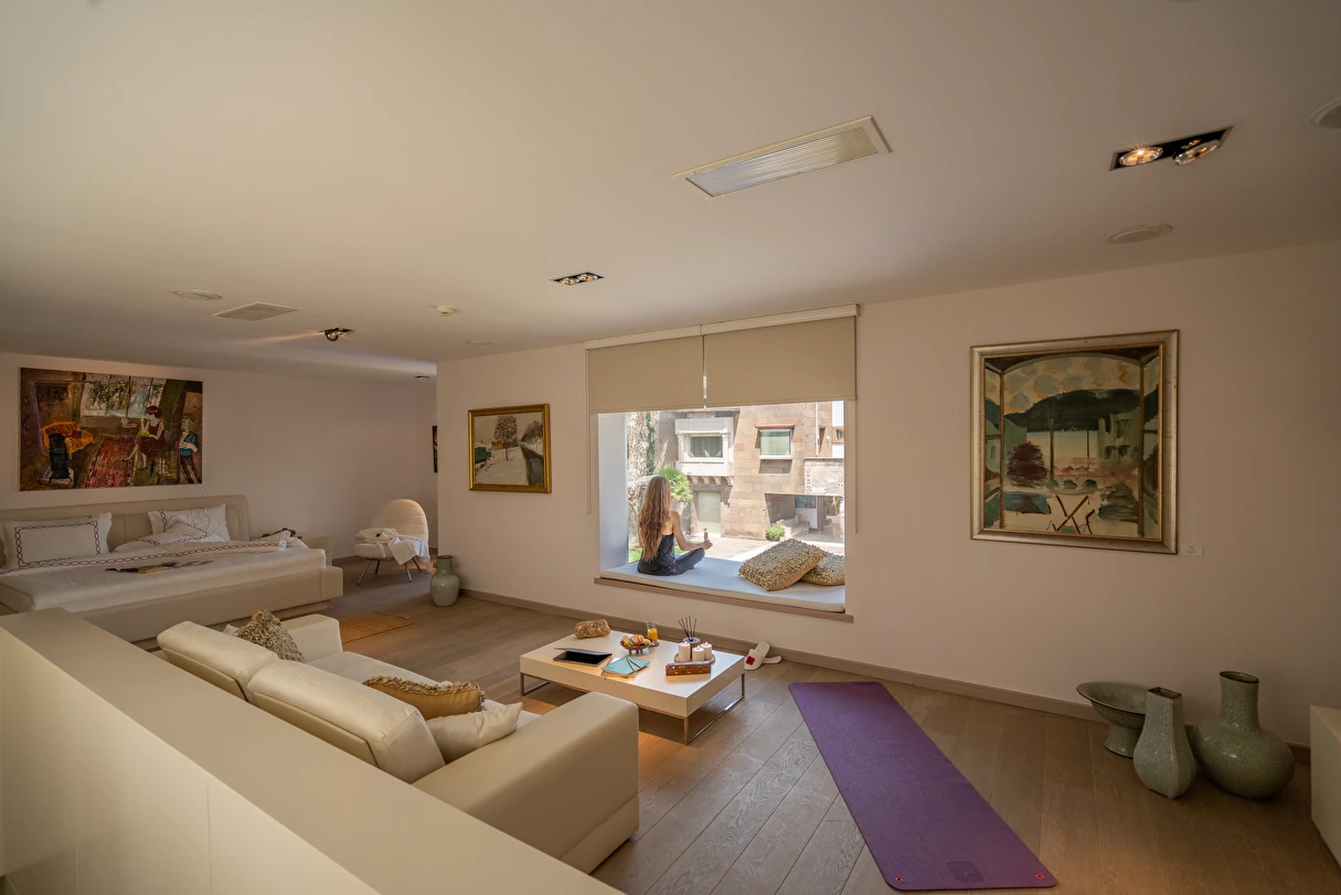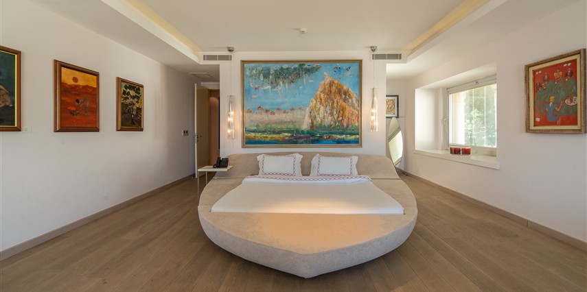 Büyükkuşoğlu ailesinin özel aile koleksiyonu otelin genelinde sergilenmektedir. Rezidans bölümününde, birbirinden değerli çağdaş sanat eserleriyle dekore edilmiş 12 süit, ve özel bir villa bulunmaktadır.