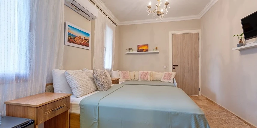 İtalyan Pansiyonu, Casa di Datça, 9 odası ile konuklarına muhteşem bir konaklama imkanı sunuyor. Tesisin, standart oda, deluxe oda ve aile odası seçeneklerinden dilediğinizi tercih ederek tatil keyfinize başlayabilirsiniz. Odalarda; kablosuz internet, düz ekran televizyon ve klima bulunmakta. Ayrıca jakuzili deluxe oda seçeneği de mevcut.