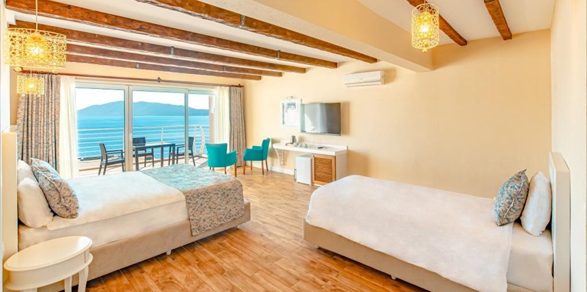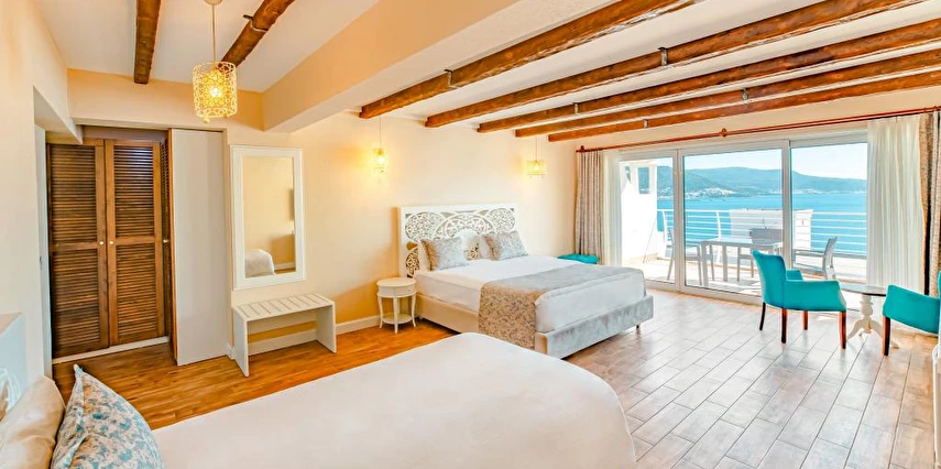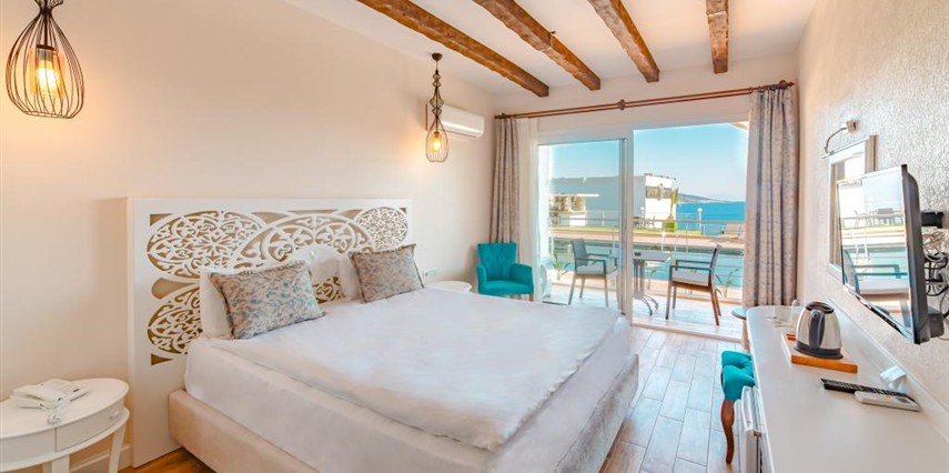 Casa Mare Bodrum otel deniz manzaralı balkonlu geniş odaları ile yaz kış siz değerli misafirlerine hizmet vermektedir.