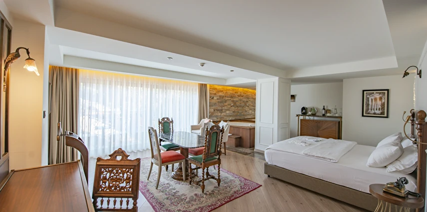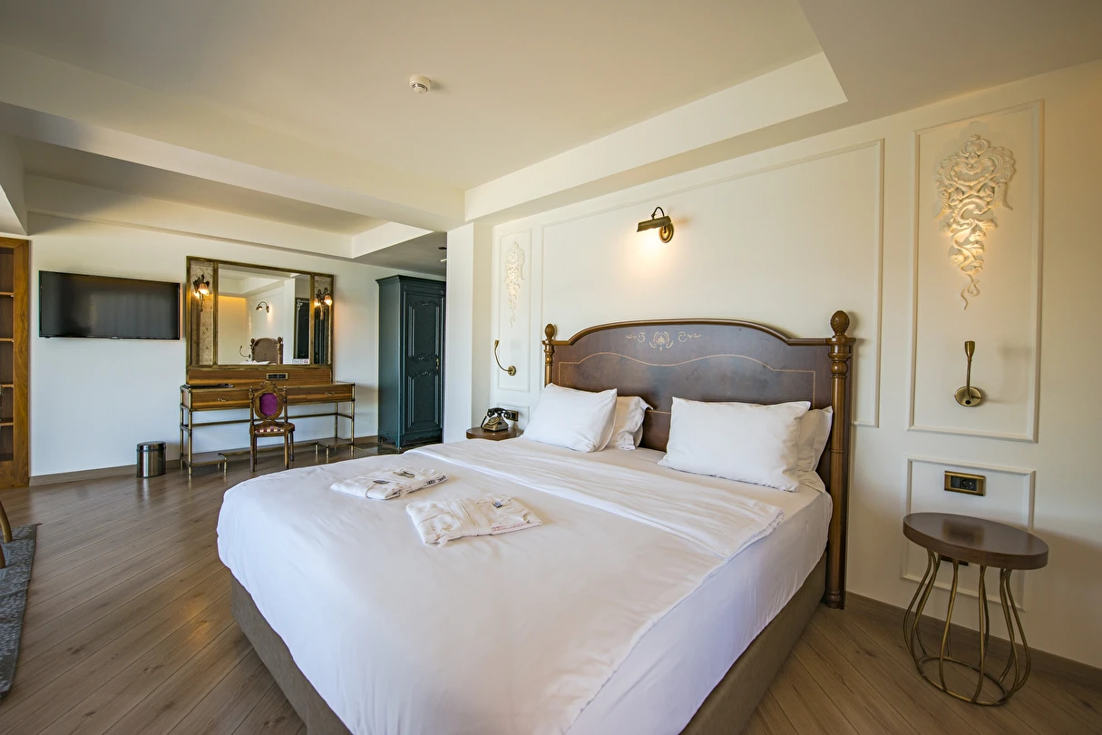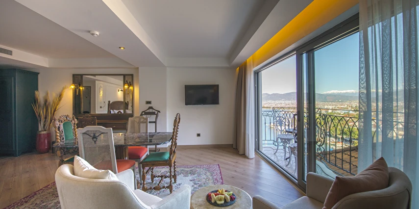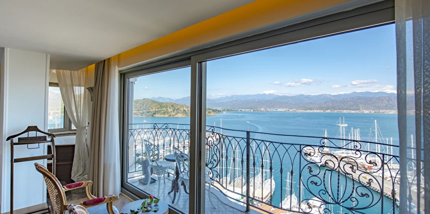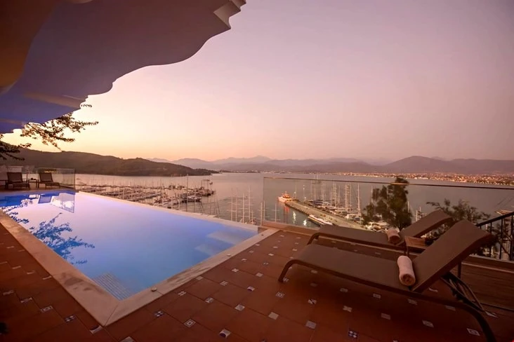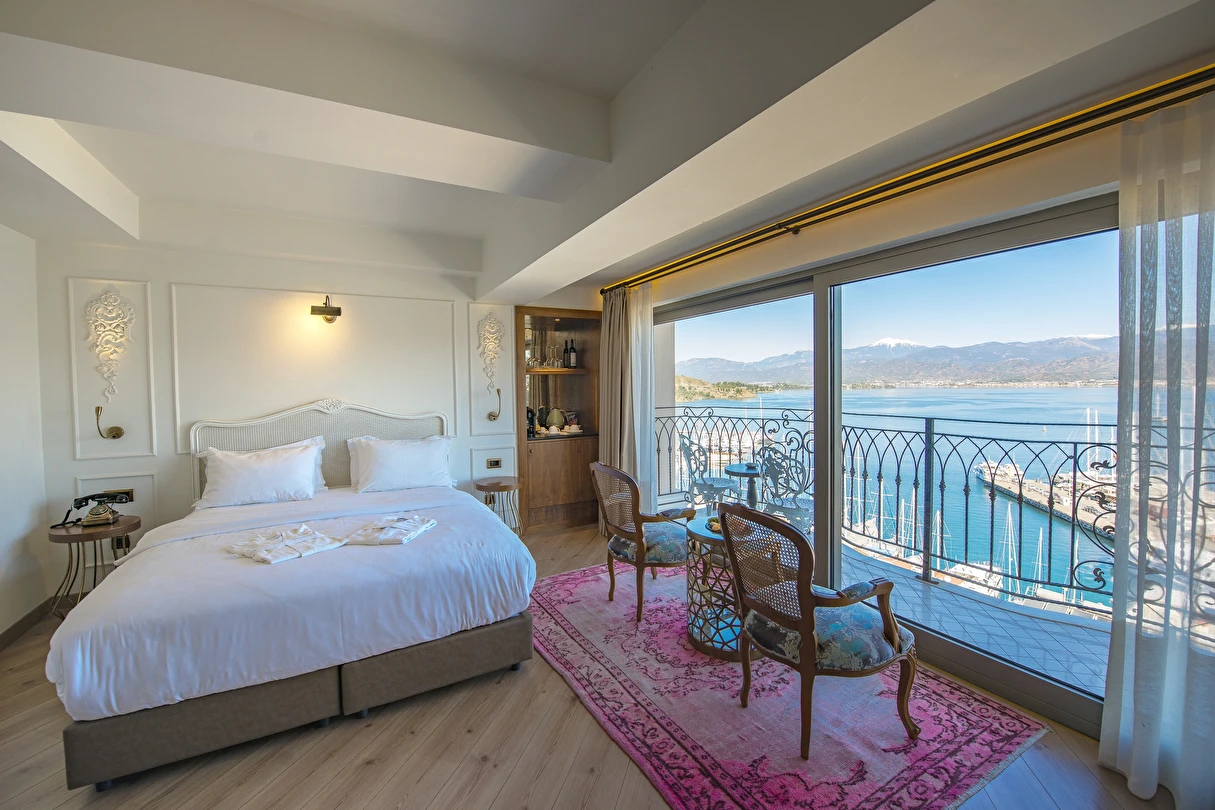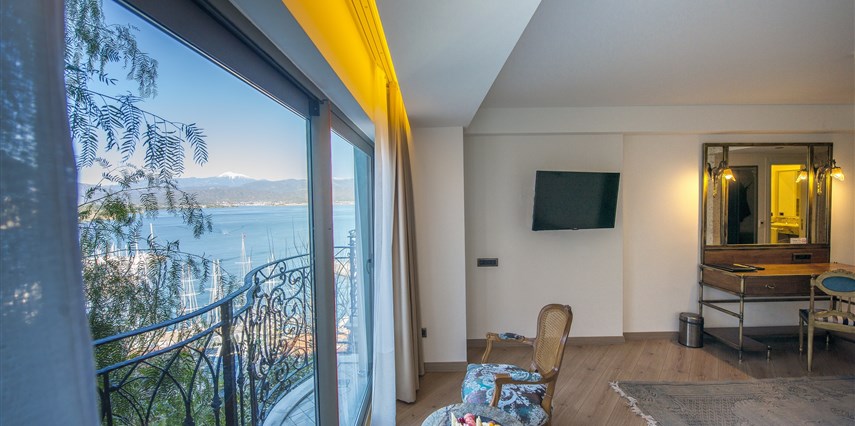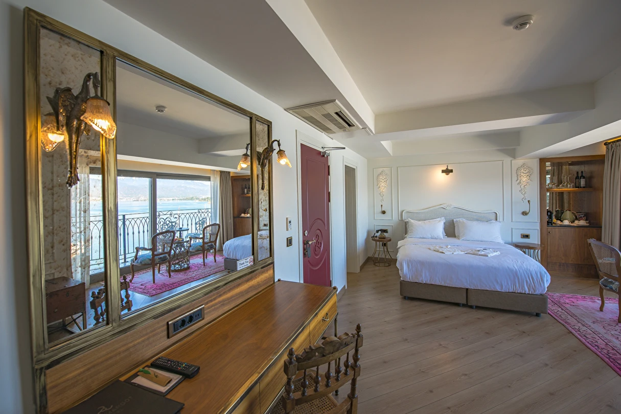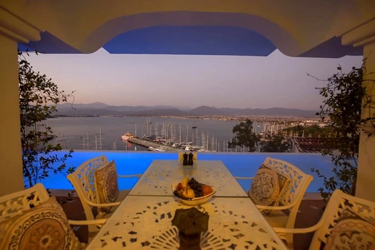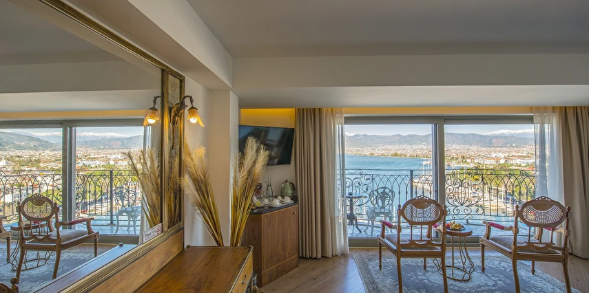 Casa Margot Hotel offers an unlimited view of nature and the sea with its bird's-eye view location to Fethiye Bay in every season. You will experience exclusivity during your vacation, from Deluxe rooms with private hot tubes, where every detail is carefully prepared for you, to the 75m² King Suite with a private Turkish Bath, which combines elegance, sophistication, and nobility with marble bathrooms. You can imagine our open buffet breakfast like a feast in our simple yet stylish restaurant, where Fethiye's breathtaking view meets the dizzying blue of the Mediterranean. With its comfortable and peaceful atmosphere in all seasons, far from the noise of the beach and the city but located in the heart of the city, Casa Margot Hotel will be happy to host you.