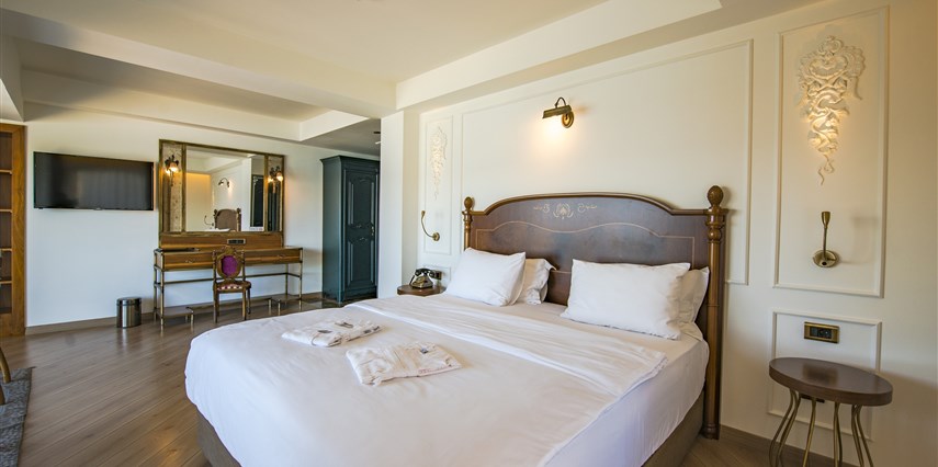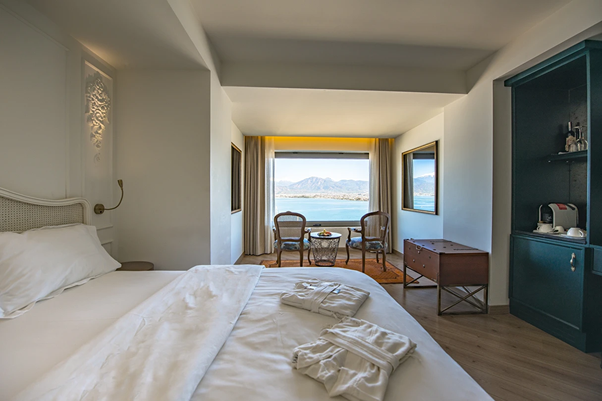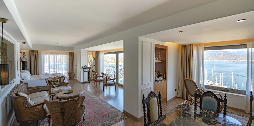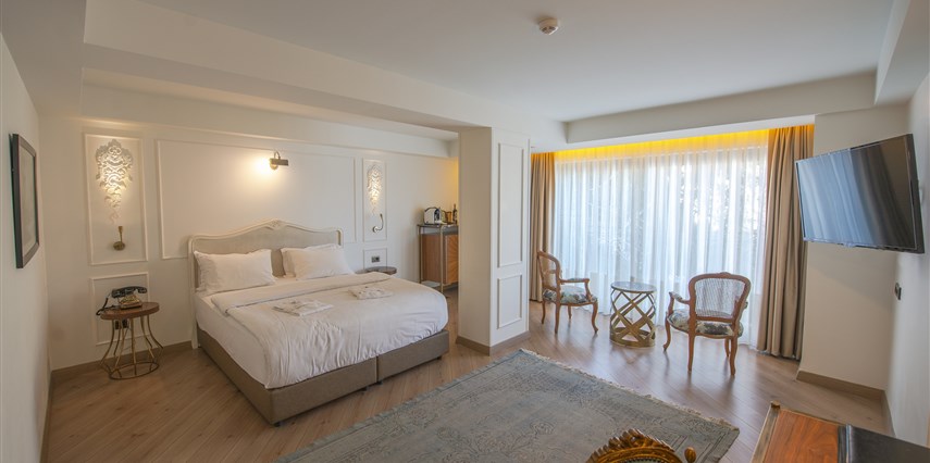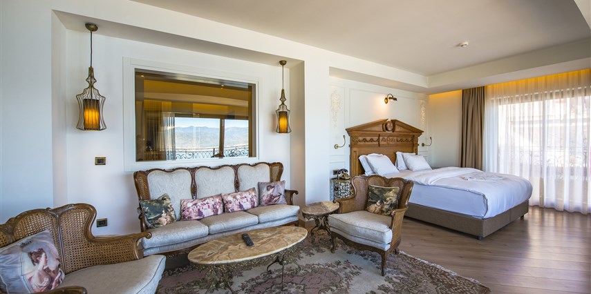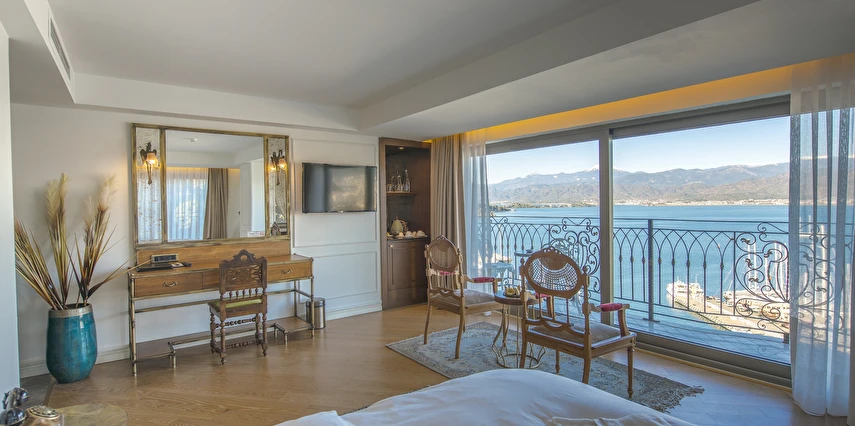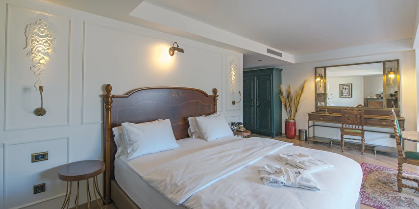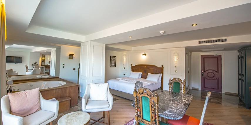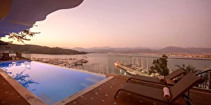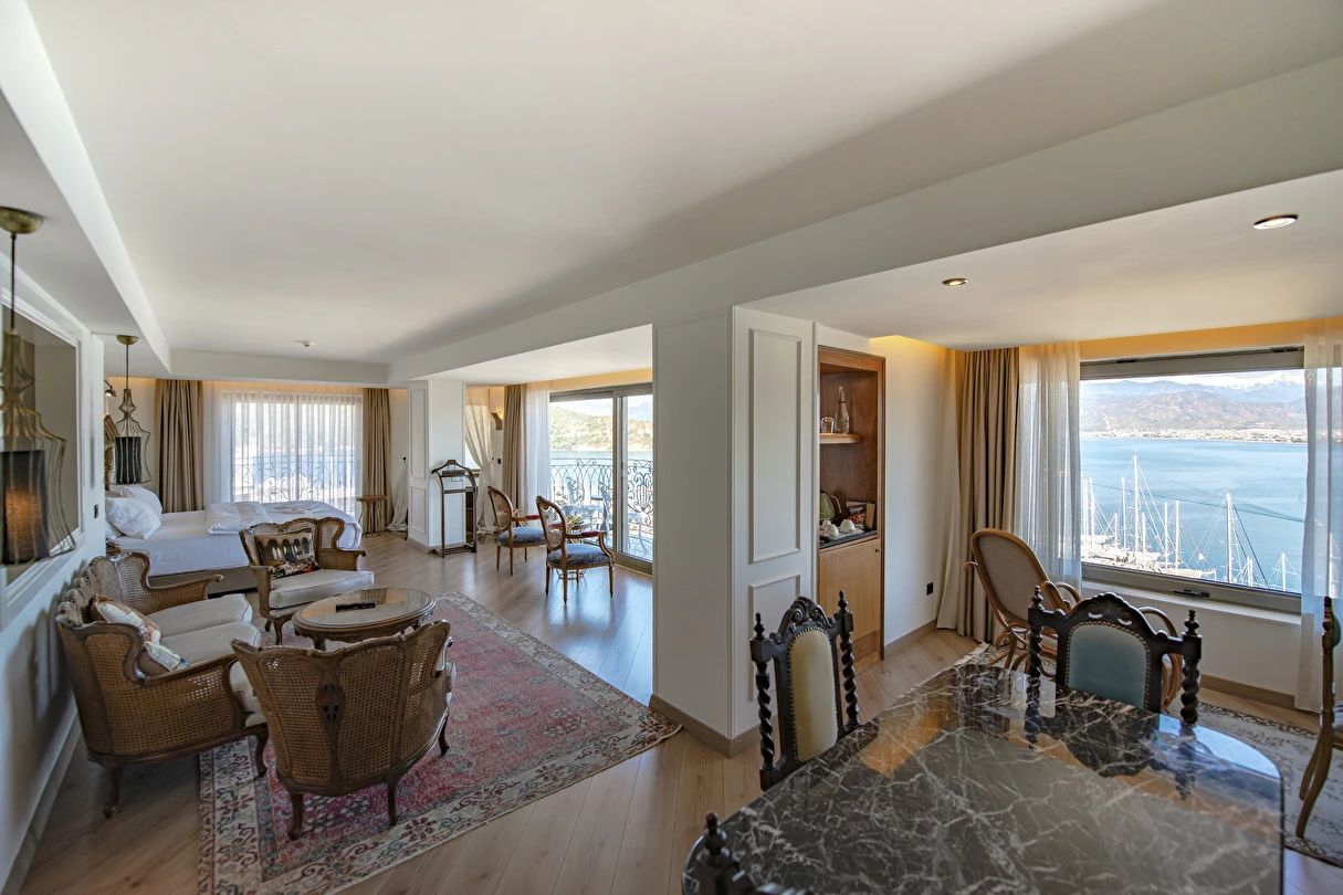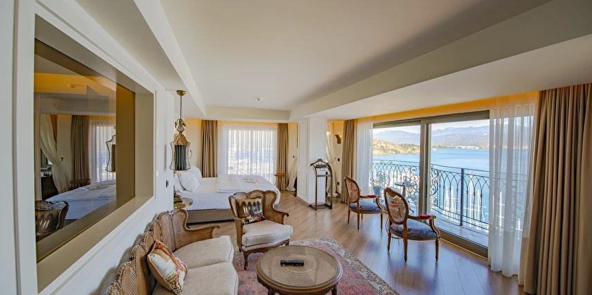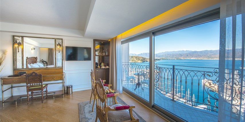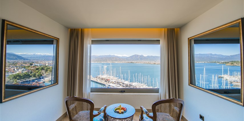 Casa Margot Hotel offers an unlimited view of nature and the sea with its bird's-eye view location to Fethiye Bay in every season. You will experience exclusivity during your vacation, from Deluxe rooms with private hot tubes, where every detail is carefully prepared for you, to the 75m² King Suite with a private Turkish Bath, which combines elegance, sophistication, and nobility with marble bathrooms. You can imagine our open buffet breakfast like a feast in our simple yet stylish restaurant, where Fethiye's breathtaking view meets the dizzying blue of the Mediterranean. With its comfortable and peaceful atmosphere in all seasons, far from the noise of the beach and the city but located in the heart of the city, Casa Margot Hotel will be happy to host you.