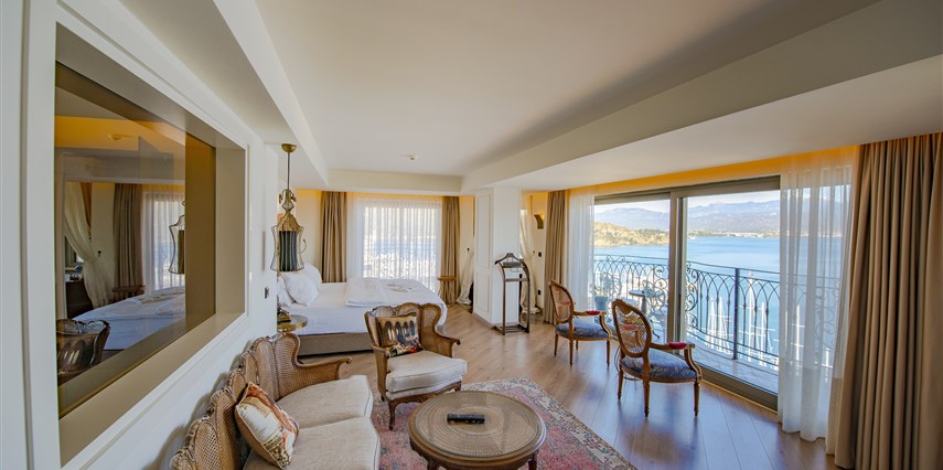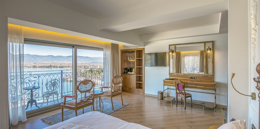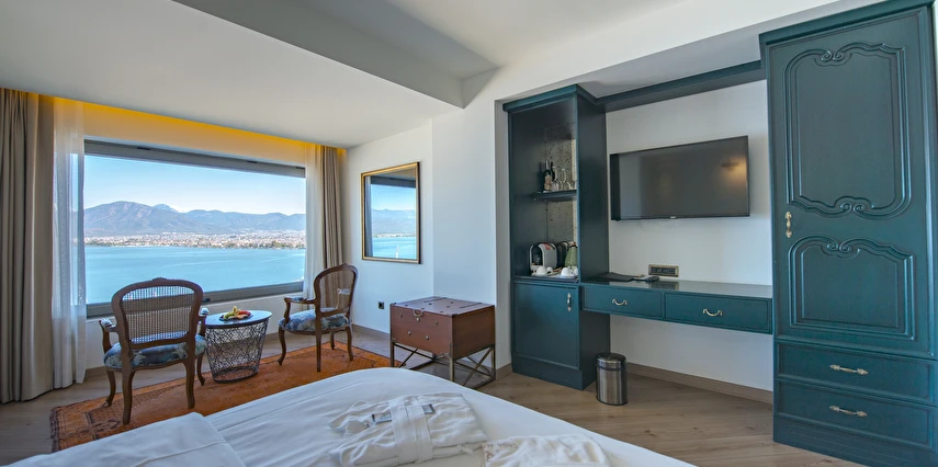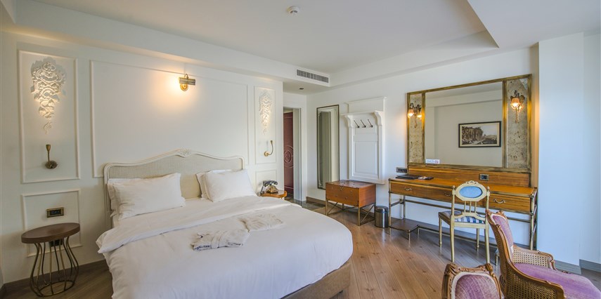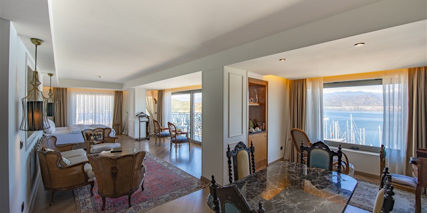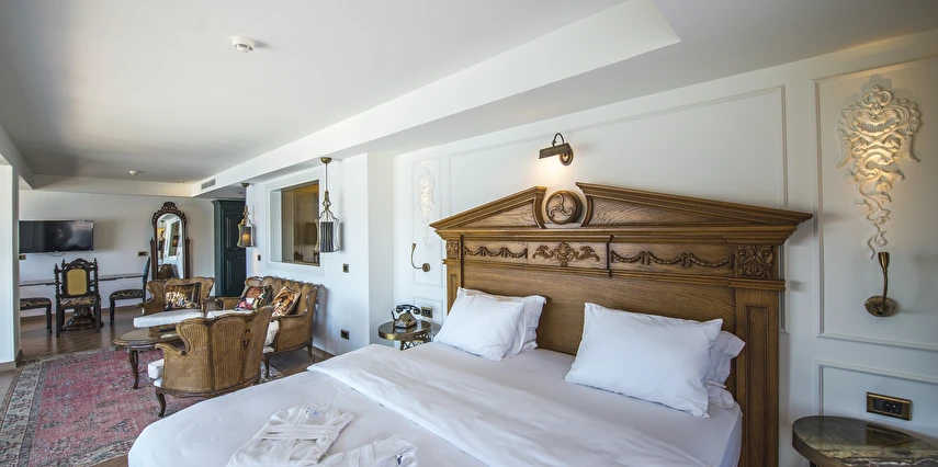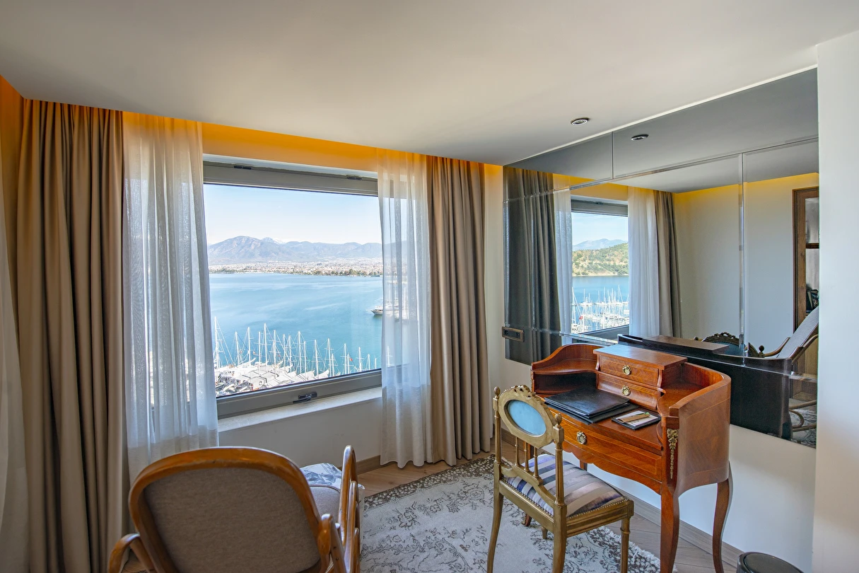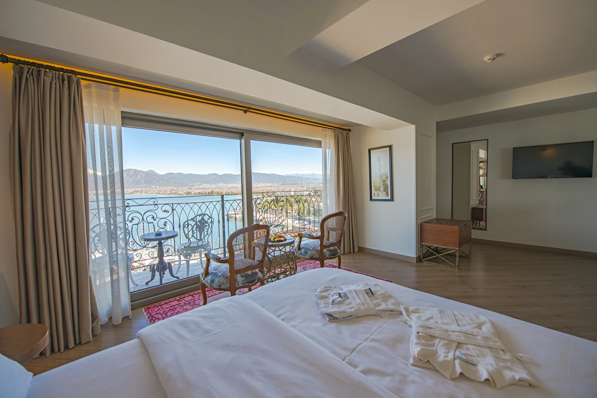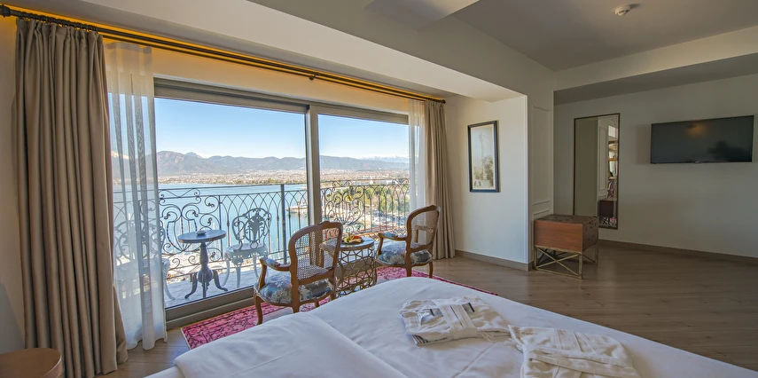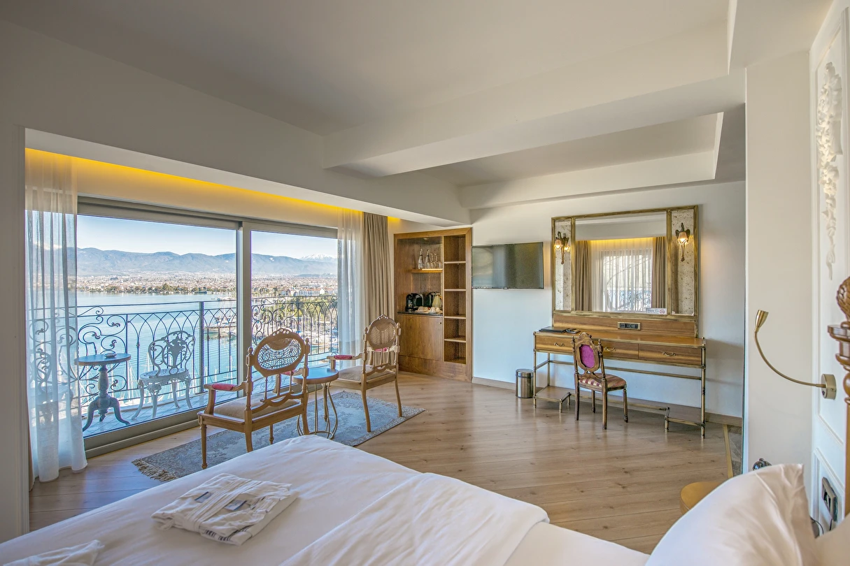 Casa Margot Hotel offers an unlimited view of nature and the sea with its bird's-eye view location to Fethiye Bay in every season. You will experience exclusivity during your vacation, from Deluxe rooms with private hot tubes, where every detail is carefully prepared for you, to the 75m² King Suite with a private Turkish Bath, which combines elegance, sophistication, and nobility with marble bathrooms. You can imagine our open buffet breakfast like a feast in our simple yet stylish restaurant, where Fethiye's breathtaking view meets the dizzying blue of the Mediterranean. With its comfortable and peaceful atmosphere in all seasons, far from the noise of the beach and the city but located in the heart of the city, Casa Margot Hotel will be happy to host you.