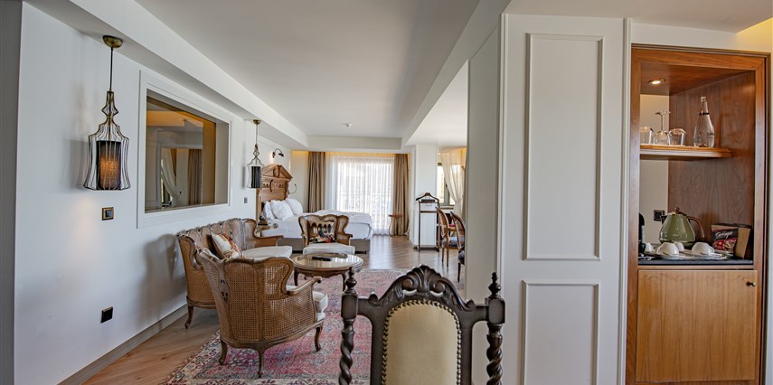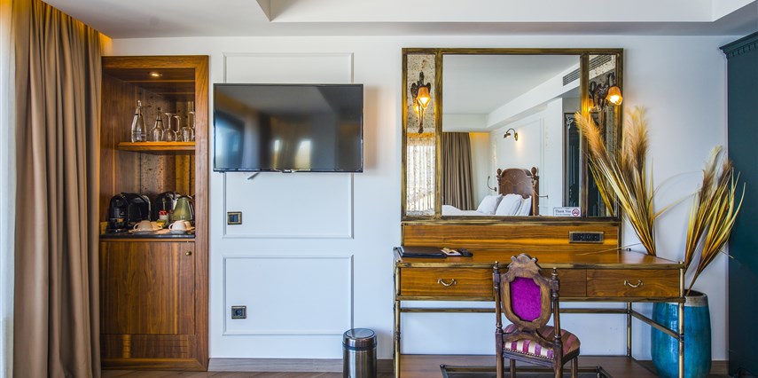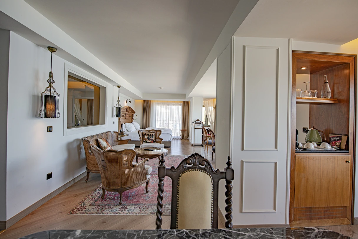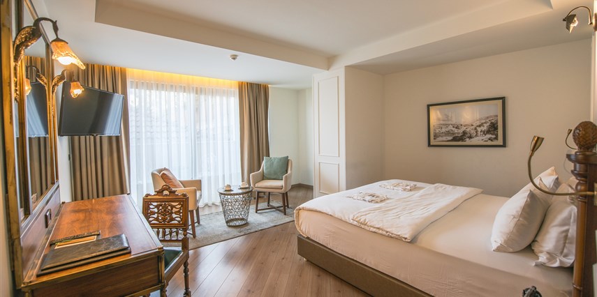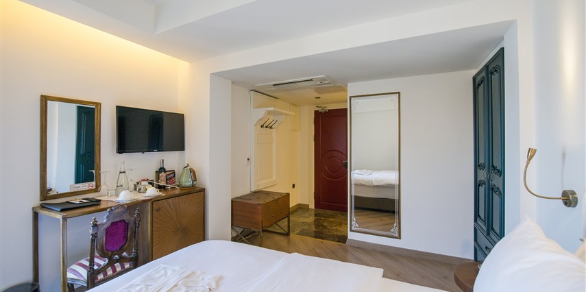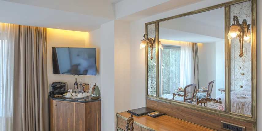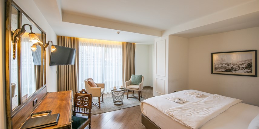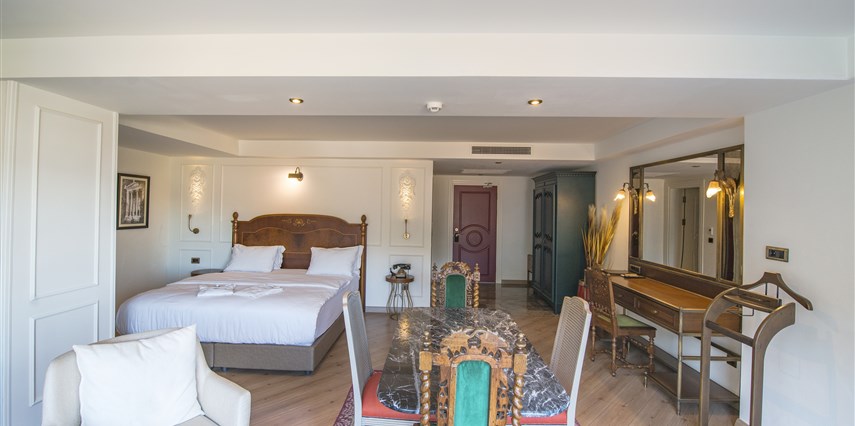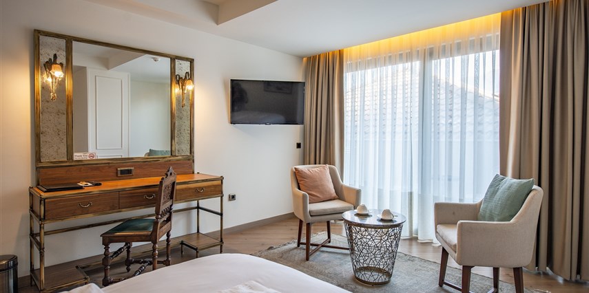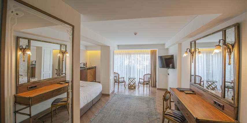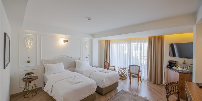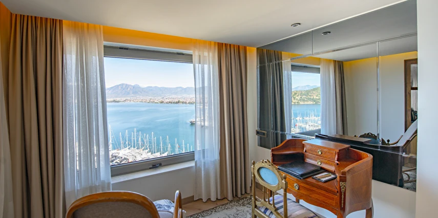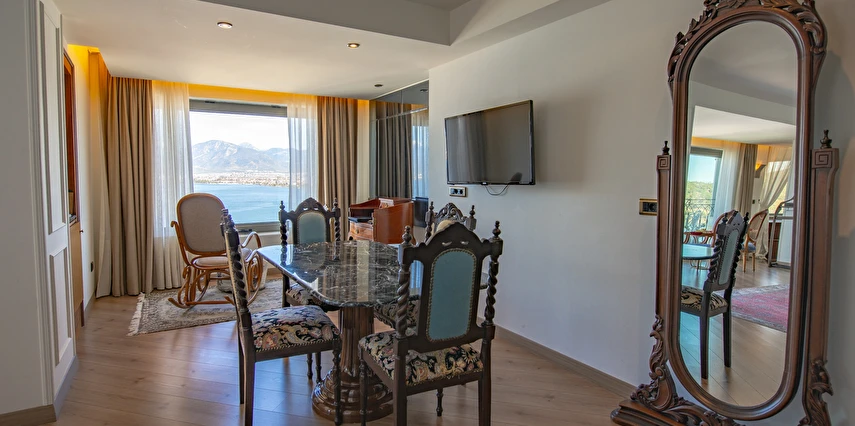 Casa Margot Hotel offers an unlimited view of nature and the sea with its bird's-eye view location to Fethiye Bay in every season. You will experience exclusivity during your vacation, from Deluxe rooms with private hot tubes, where every detail is carefully prepared for you, to the 75m² King Suite with a private Turkish Bath, which combines elegance, sophistication, and nobility with marble bathrooms. You can imagine our open buffet breakfast like a feast in our simple yet stylish restaurant, where Fethiye's breathtaking view meets the dizzying blue of the Mediterranean. With its comfortable and peaceful atmosphere in all seasons, far from the noise of the beach and the city but located in the heart of the city, Casa Margot Hotel will be happy to host you.