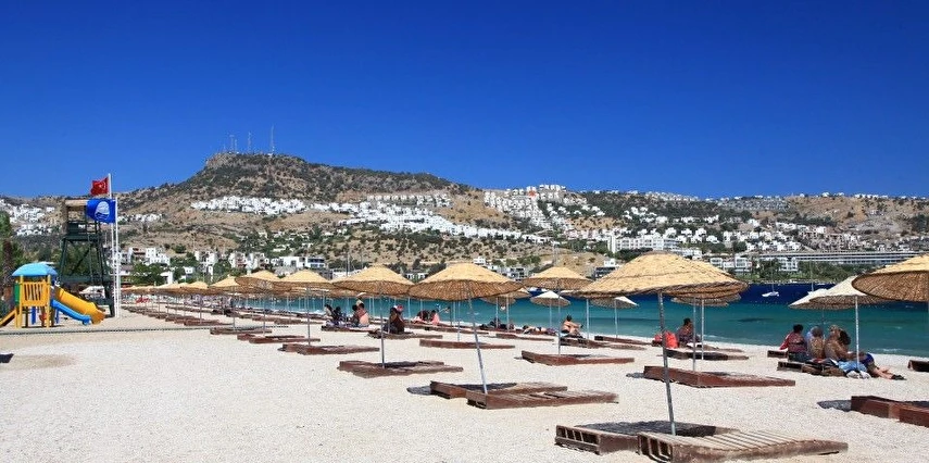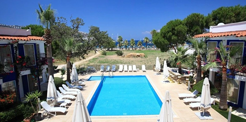 Otelimiz Bodrum Gündoğan merkezde ve deniz kenarındadır. Plajımız ile sizleri Ege'nin en güzel mavisinde ağırlar.