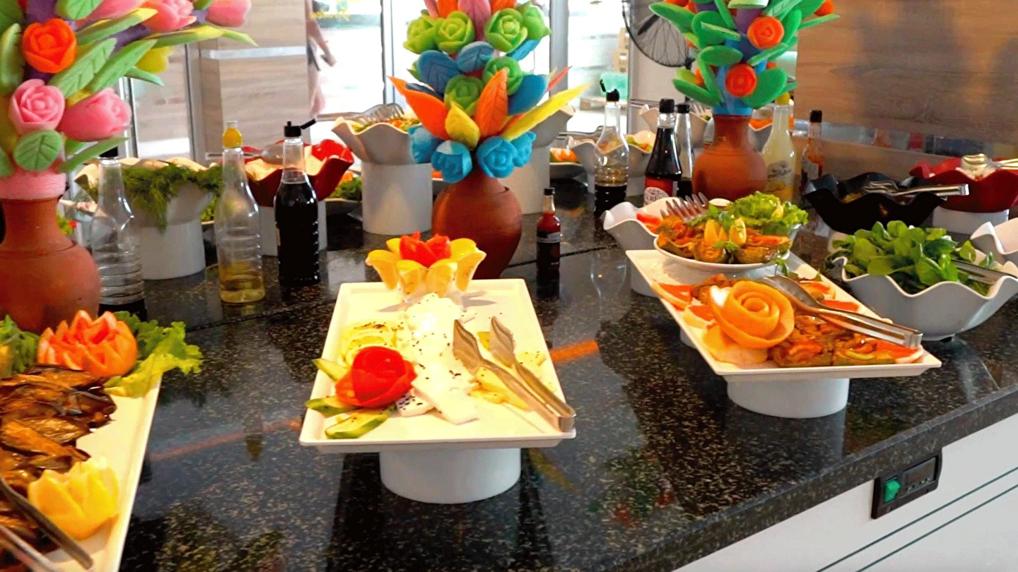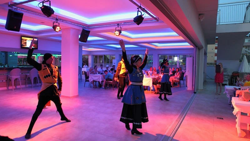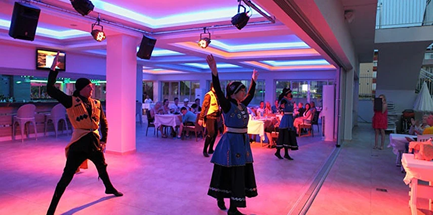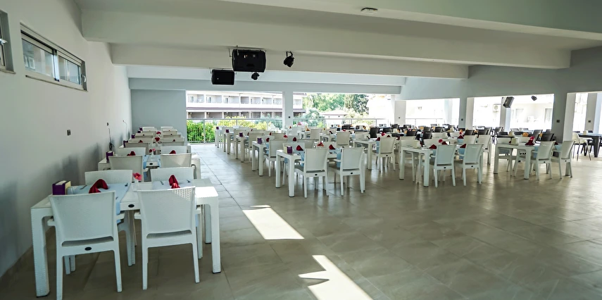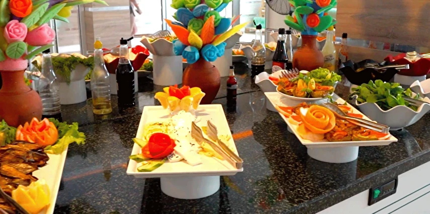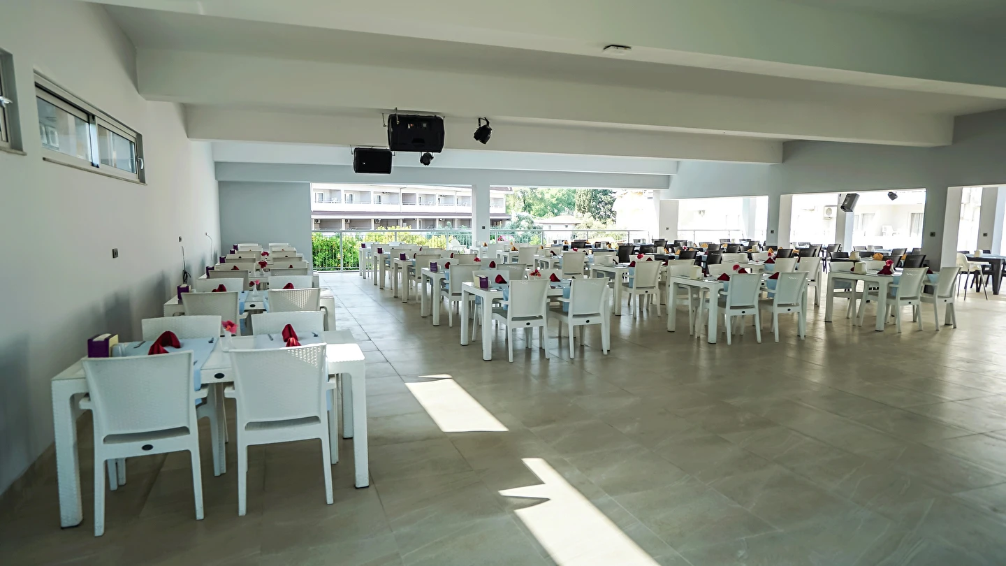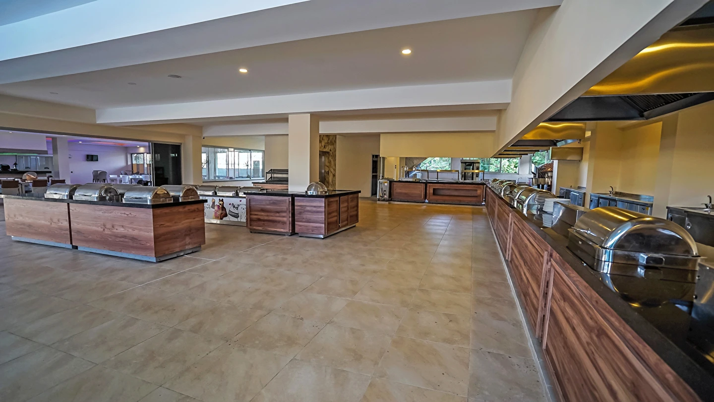 Sabah kahvaltısı, öğle yemeği ve akşam yemeği açık büfe olup, tesisin belirlemiş olduğu markalar dahilinde yerli içecekler 10:30 ile 22:30 saatleri arasında ücretsizdir. Dondurma, taze sıkılmış meyve suları ve tüm ithal içecekler ücretlidir.