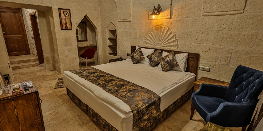 CaveAdocia'daki konaklamanızı bir keyfe dönüştürmek için buradayız. Size hak ettiğiniz ilgiyi sunmak için konfor ve rahatlığı harmanlamaya kendimizi adadık. Kusursuz konaklayabilmeniz için özenli personelimizle burada keyifli bir deneyim yaşayacağınızı garanti ediyoruz.
