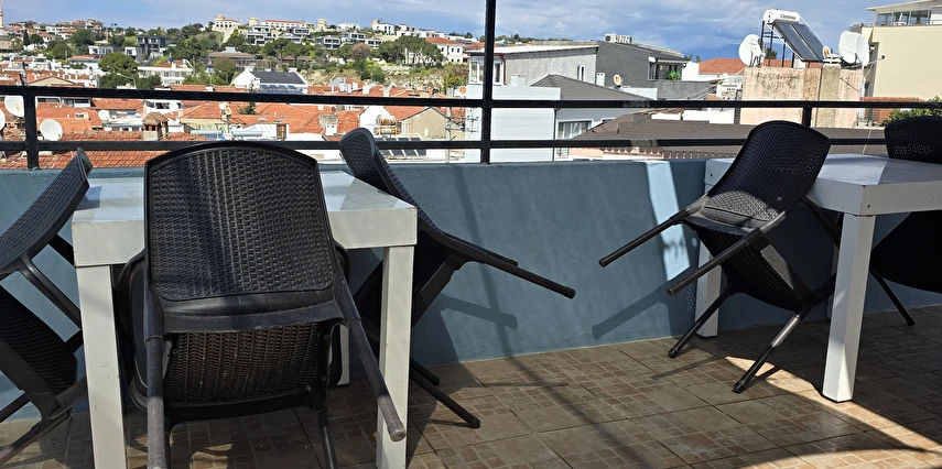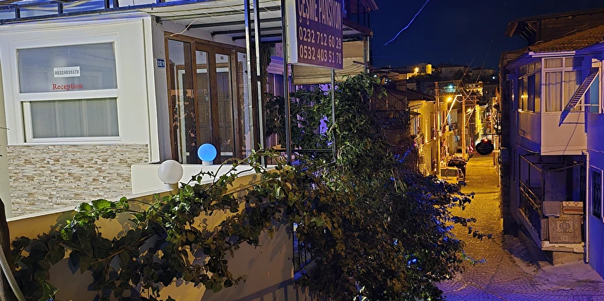 Çeşme Pansiyon, geniş avlu bahçesi ile ferah ortam sağlamaktadır. Ayrıca Çeşme manzarasına sahip güzel bir terası bulunmaktadır.