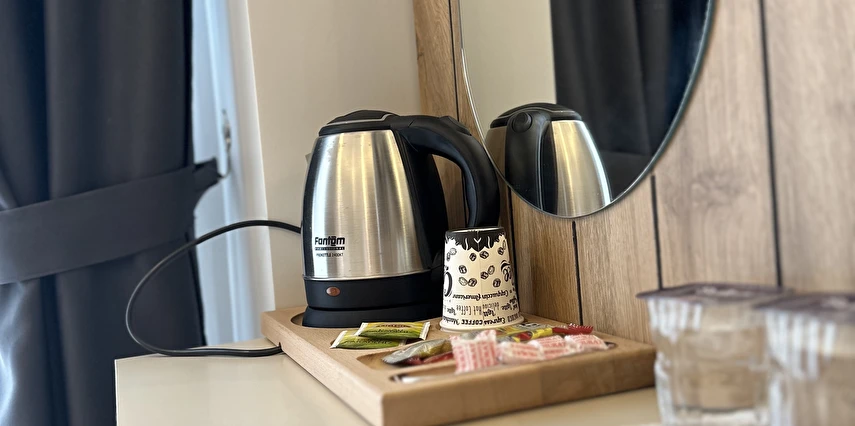 24 saat resepsiyon hizmeti sunan tesisin odalarında LED TV, uydu yayını, ücretsiz Wi-Fi, telefon, ısıtma, klima, elektrikli su ısıtıcısı, ücretsiz çay-kahve setup, saç kurutma makinası, ücretsiz emanet kasası (laptop için uygundur), banyo, duş, havlu seti, terlik, banyo buklet malzemeleri gibi olanaklar bulunmaktadır.
