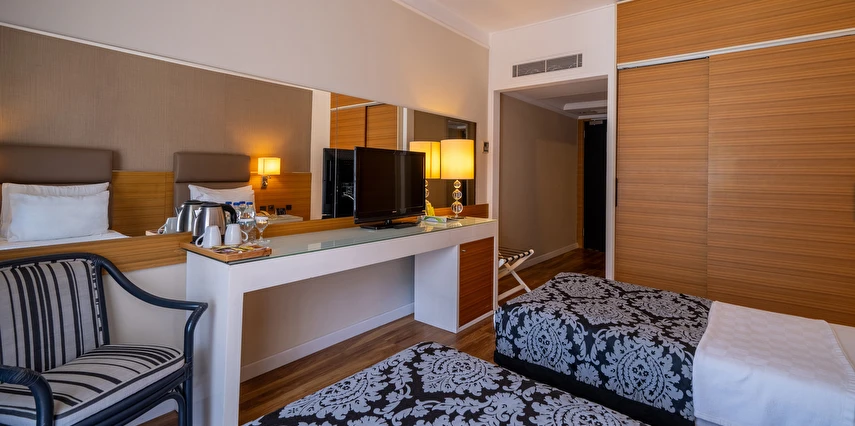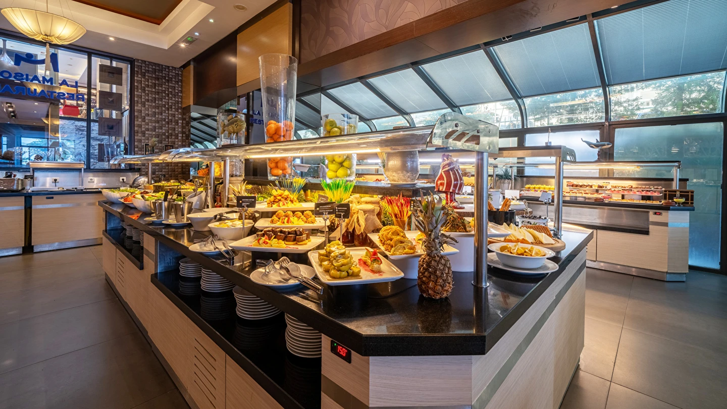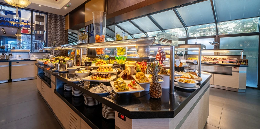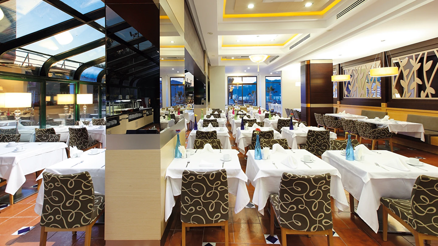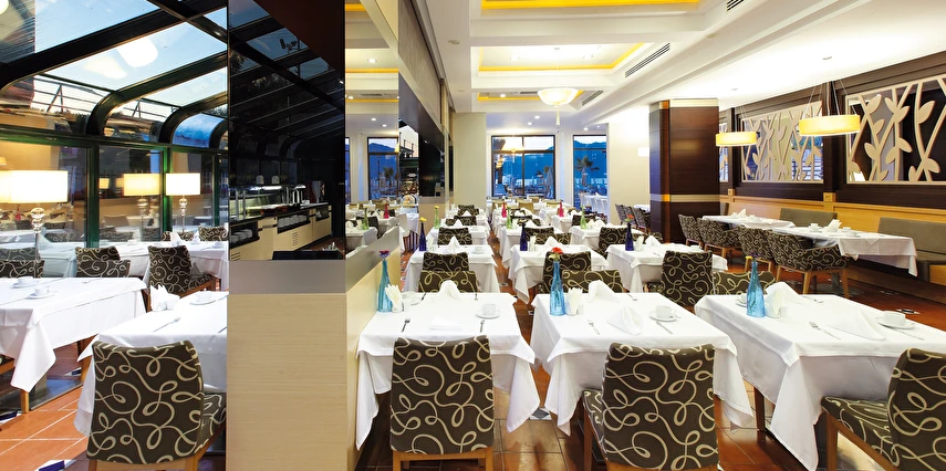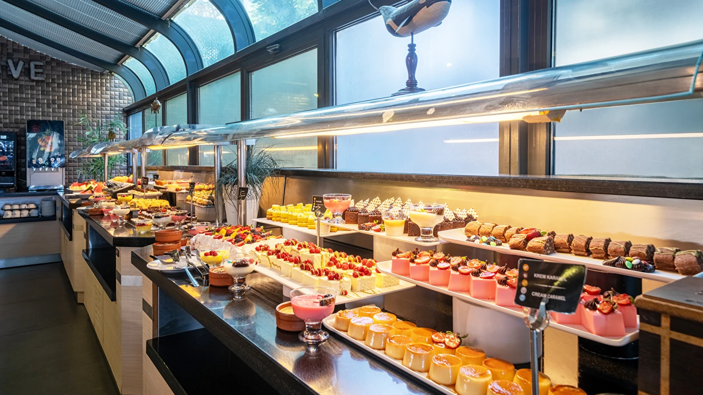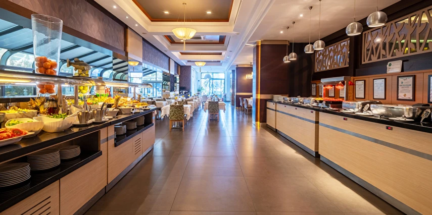 Sabah kahvaltısı, öğle ve akşam yemekleri açık büfe olup, tesisin belirlemiş olduğu markalar dahilinde 10:00 ile 24:00 saatleri arasında yerli içecekler ücretsizdir.
