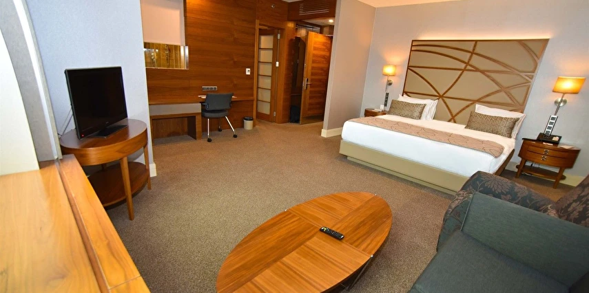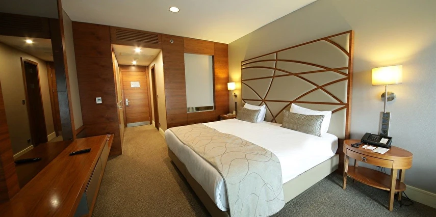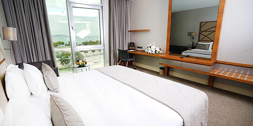 Modern ve ferah tasarıma sahip odaları, günün yoğun temposunun ardından rahat bir dinlenme alanı sunarken; konforlu yatakları ve fonksiyonel çalışma alanları iş seyahatleri için ideal bir ortam oluşturur. Otel bünyesinde yer alan restoran, Türk ve dünya mutfağından seçkin lezzetlerle konaklama deneyimini tamamlar.