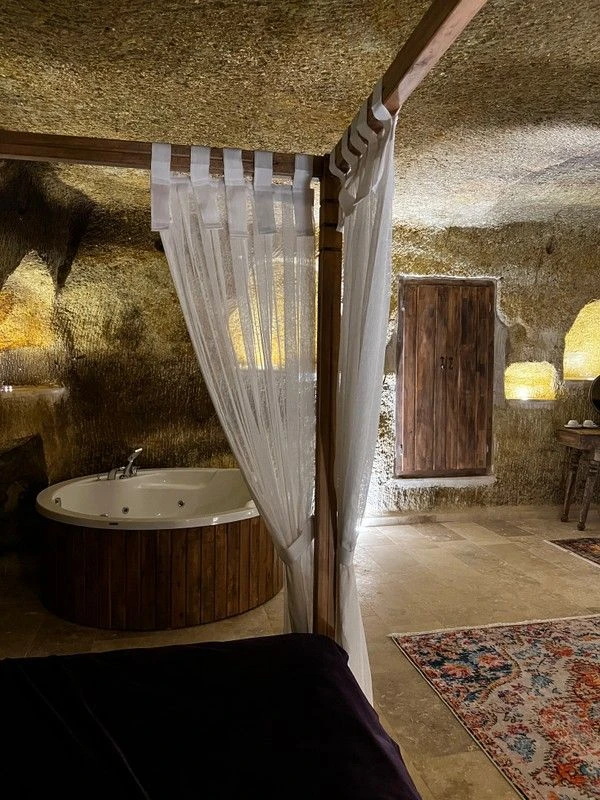 Ancak, bu hikayeyi örmekte sadece odalar değil – açılacak deneyimlerin senfonisi de vardır. Bir jakuzinin sıcağında hayalini kurun, zamanın geçişini tanıklık eden eski taş duvarlarla çevrili. Cappadocia’nın tarihine ait yankılar, her kabarcıkla rezonans yaparak geçmişle şimdiyi uyumlu bir şekilde birleştirir.