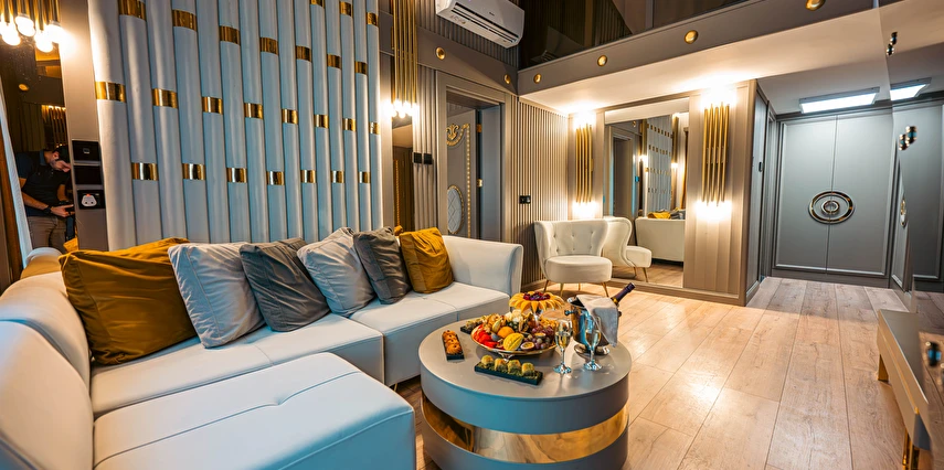 - Romantik temada oda süslemesi Odaya VIP balayı ikramları