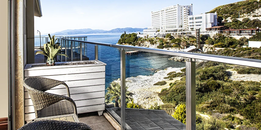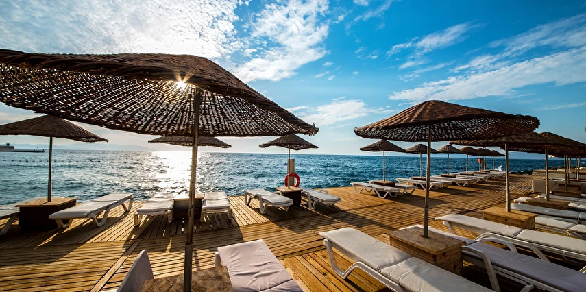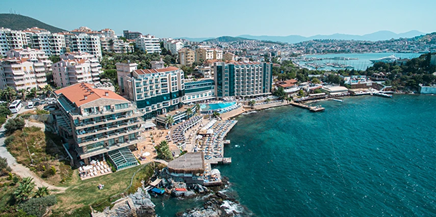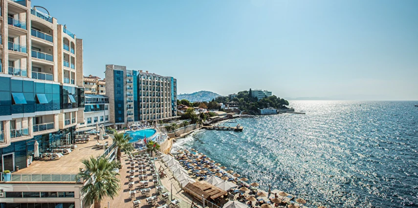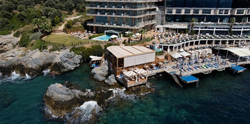 Charisma De Luxe Hotel, denize sıfır konumu ve eşsiz olanaklarıyla sizi rüya gibi bir tatilin kapılarını aralıyor. 900 m²'lik platform iskele üzerinde, 60 metre uzunluğunda kum, çakıl ve taş karışımı plajda, Ege'nin masmavi sularında rahatça yüzebilir, güneşin tadını çıkarabilirsiniz. Sıfırdan denize inen bu özel alan, tatilinizi unutulmaz kılmak için tasarlandı.