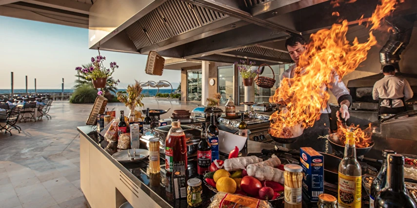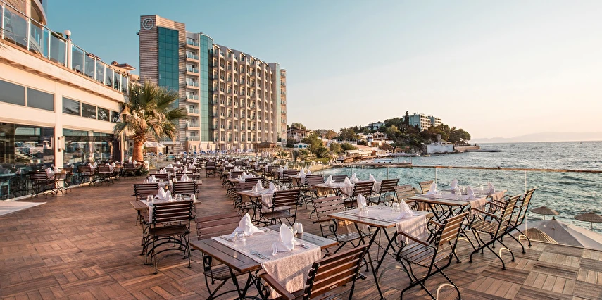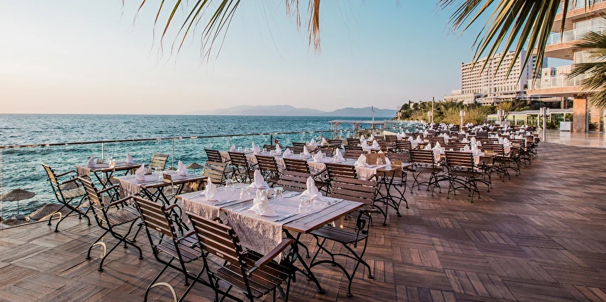 Charisma De Luxe Hotel’in sunduğu lezzetler ise, tatilinizi daha da özel kılacak. Otelde bulunan Starbucks Corner, günün her saati misafirlere taze kahve ve tatlı seçenekleri sunarak, dinlenmek için ideal bir alan oluşturuyor. Charides Sea Food Ala Carte restoranı ise iskele üzerinde sunulan akşam yemekleriyle, misafirlere unutulmaz bir gastronomik deneyim yaşatıyor. Ayrıca, otelin organik ürünleriyle tanınan Sefabey çiftliğinden gelen taze ürünler, "bahçeden sofraya" prensibiyle oteldeki her yemeğe lezzet katıyor.