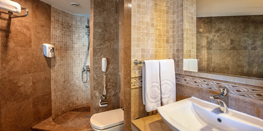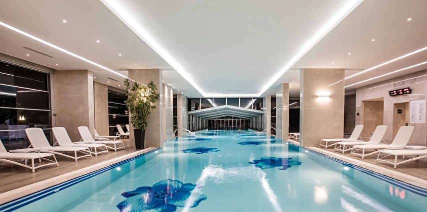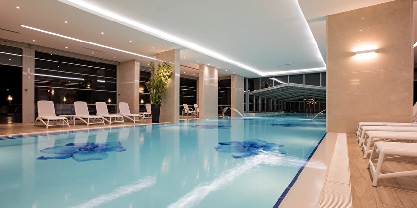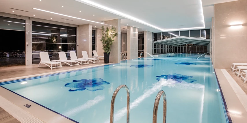 Roma Havuzu, Türk Hamamı, sauna, tuz odası, macera duşu, buhar banyosu, kar çeşmesi, kova duşu ve şok duşu gibi yenileyici seçeneklerle, tüm stresinizi atabilir ve rahatlayabilirsiniz. Ayrıca, 30*7 metre büyüklüğündeki ısıtmalı kapalı yüzme havuzu da ücretsiz olarak hizmetinizdedir. Her yaştan misafire hitap eden bu olanaklar, sağlıklı bir yaşam tarzını desteklerken, zindeliğinizi artırır.
