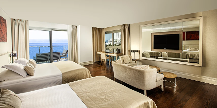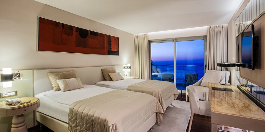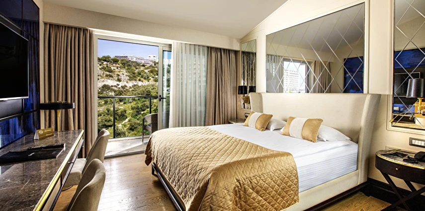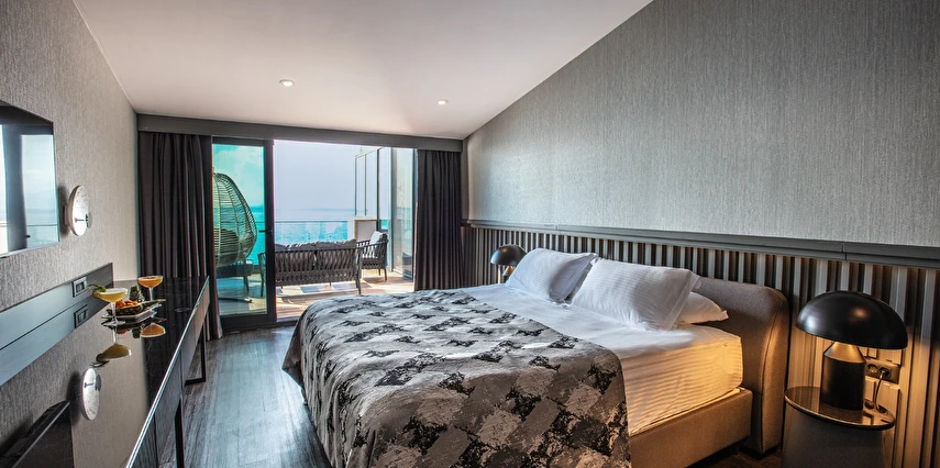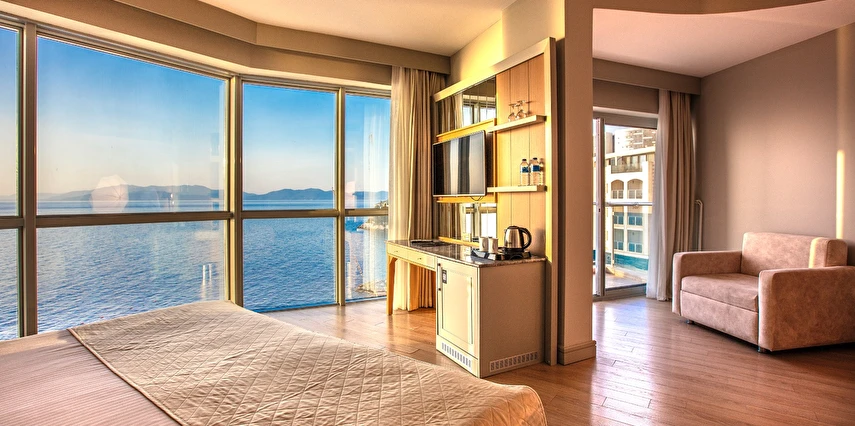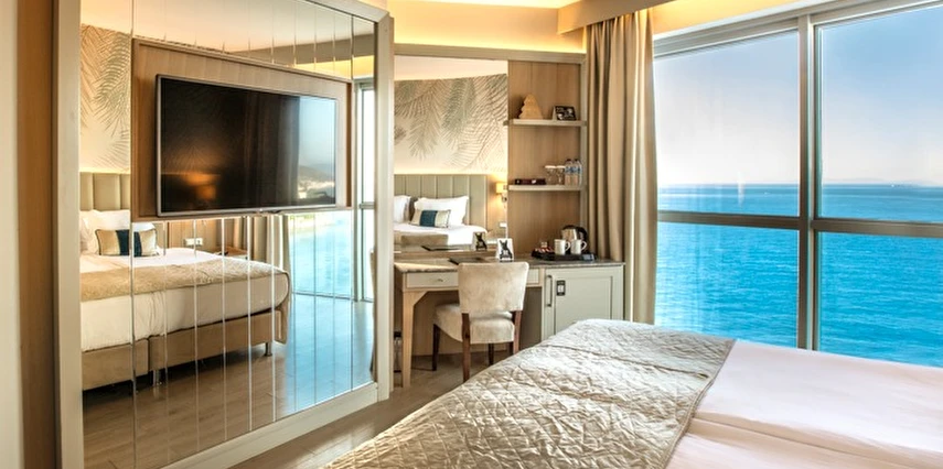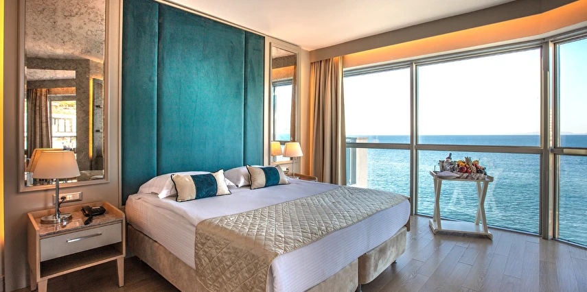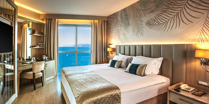 Charisma De Luxe Hotel, muazzam deniz manzarası ve denize sıfır konumuyla, 218 modern odasıyla yıl boyunca, 12 ay boyunca misafirlerine unutulmaz bir tatil deneyimi sunuyor. Şehir merkezine sadece yürüme mesafesinde bulunan bu lüks otel, marinaya ise yalnızca 5 dakika uzaklıkta yer alıyor, böylece konuklar hem dinlenip hem de keşfetmek için mükemmel bir lokasyona sahip.