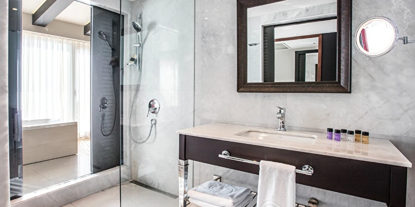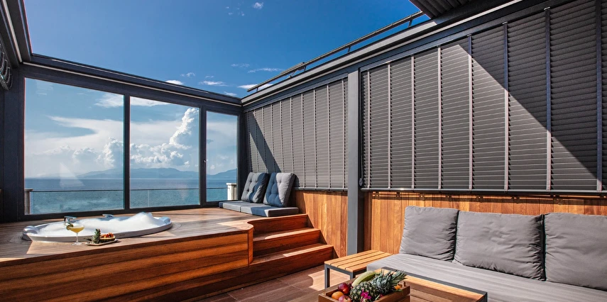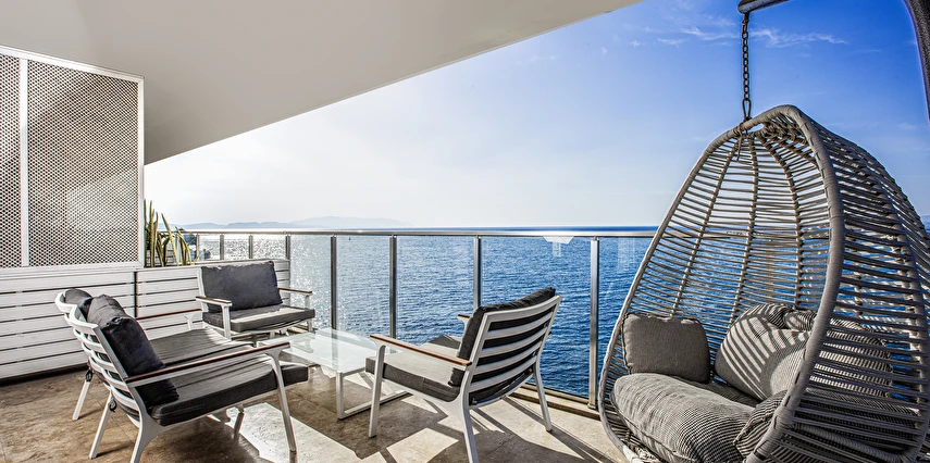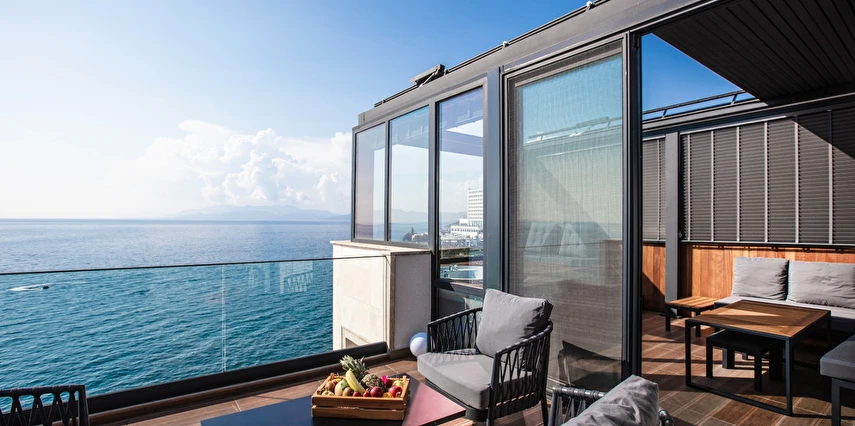 Oteldeki muazzam sonsuzluk havuzu, büyüleyici bir manzara eşliğinde yazın keyfini çıkarabileceğiniz en güzel alanlardan biri. Mavi gökyüzü ile denizin birleştiği bu alanda, güneşin tadını çıkararak kendinizi rahatlatabilirsiniz.