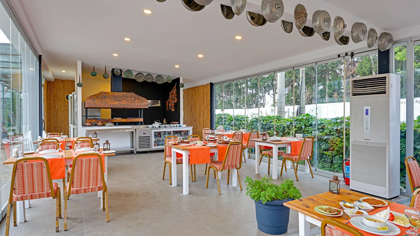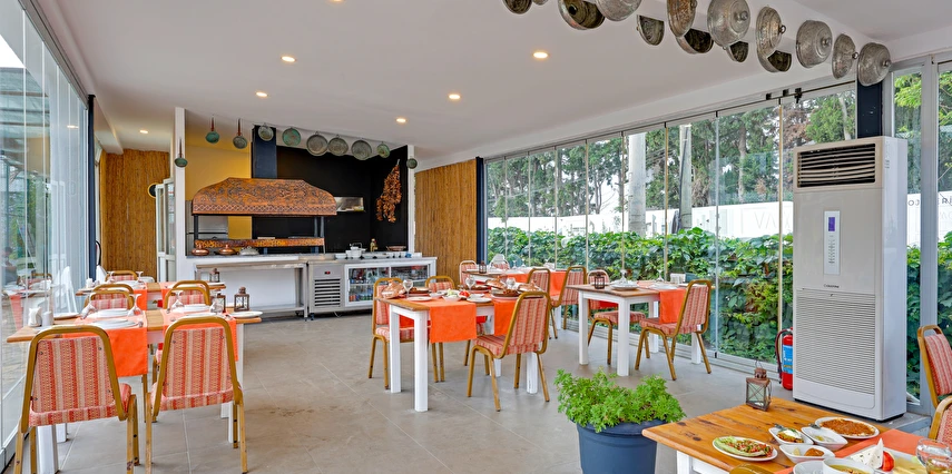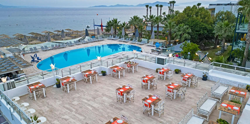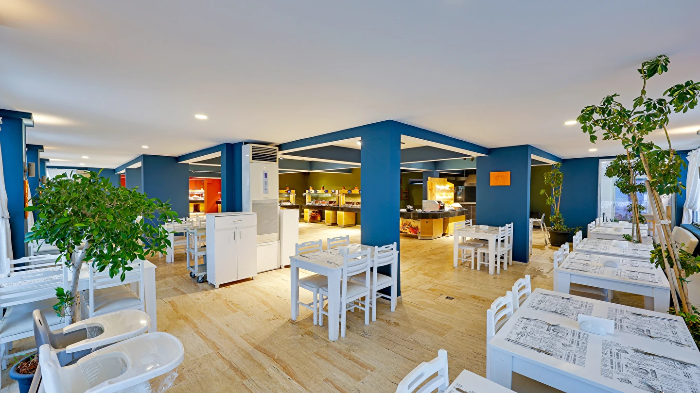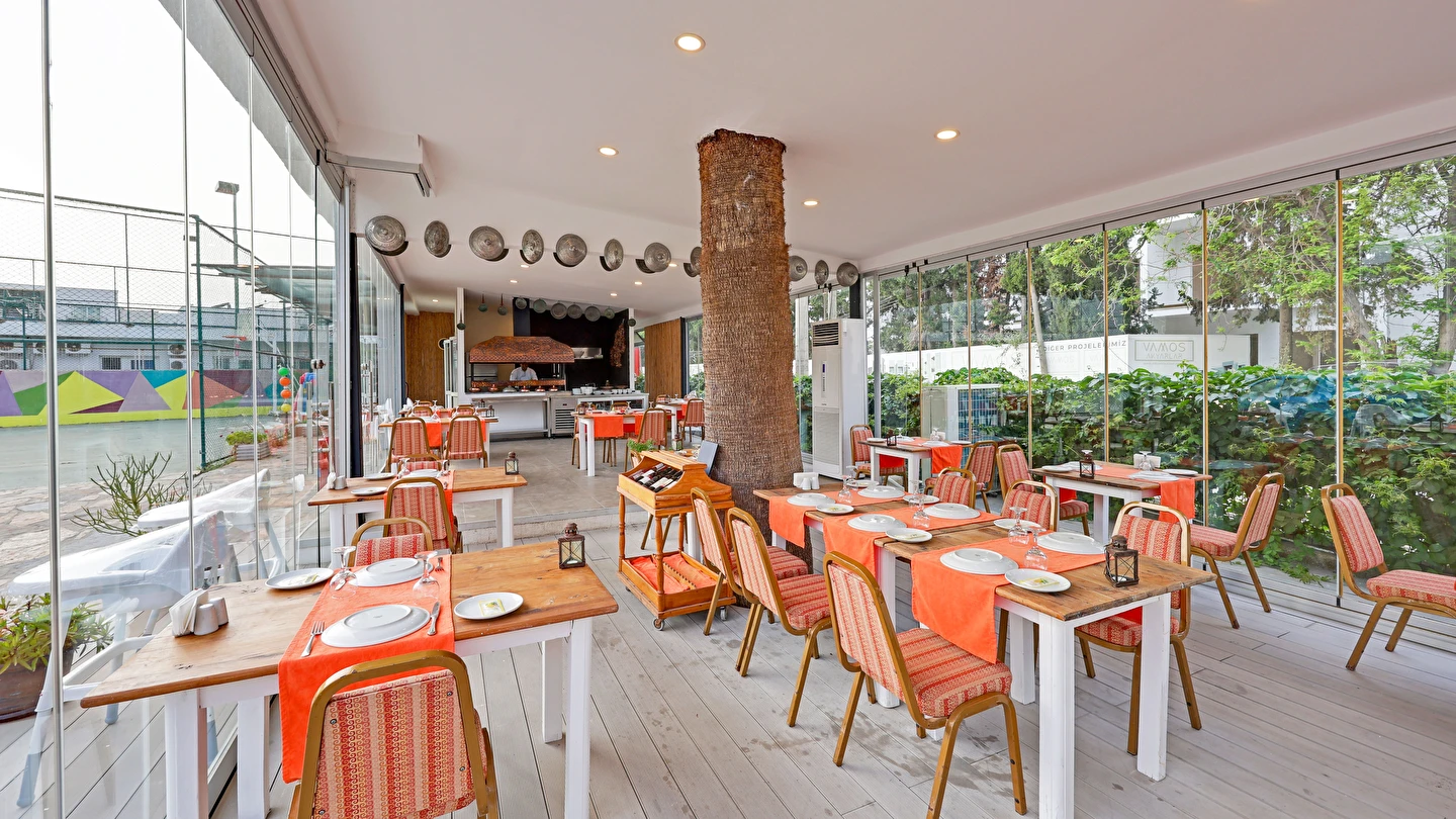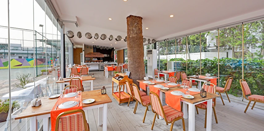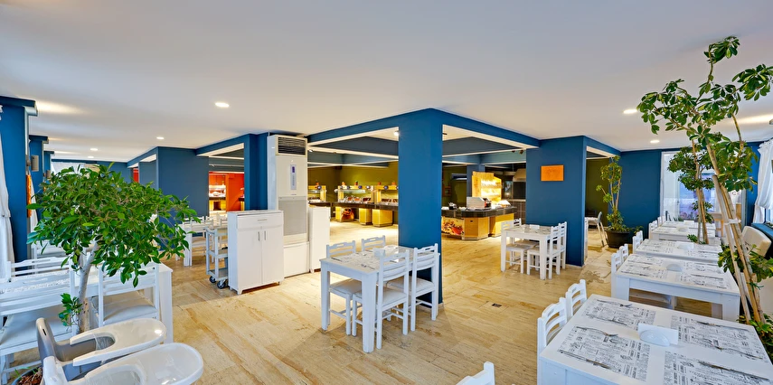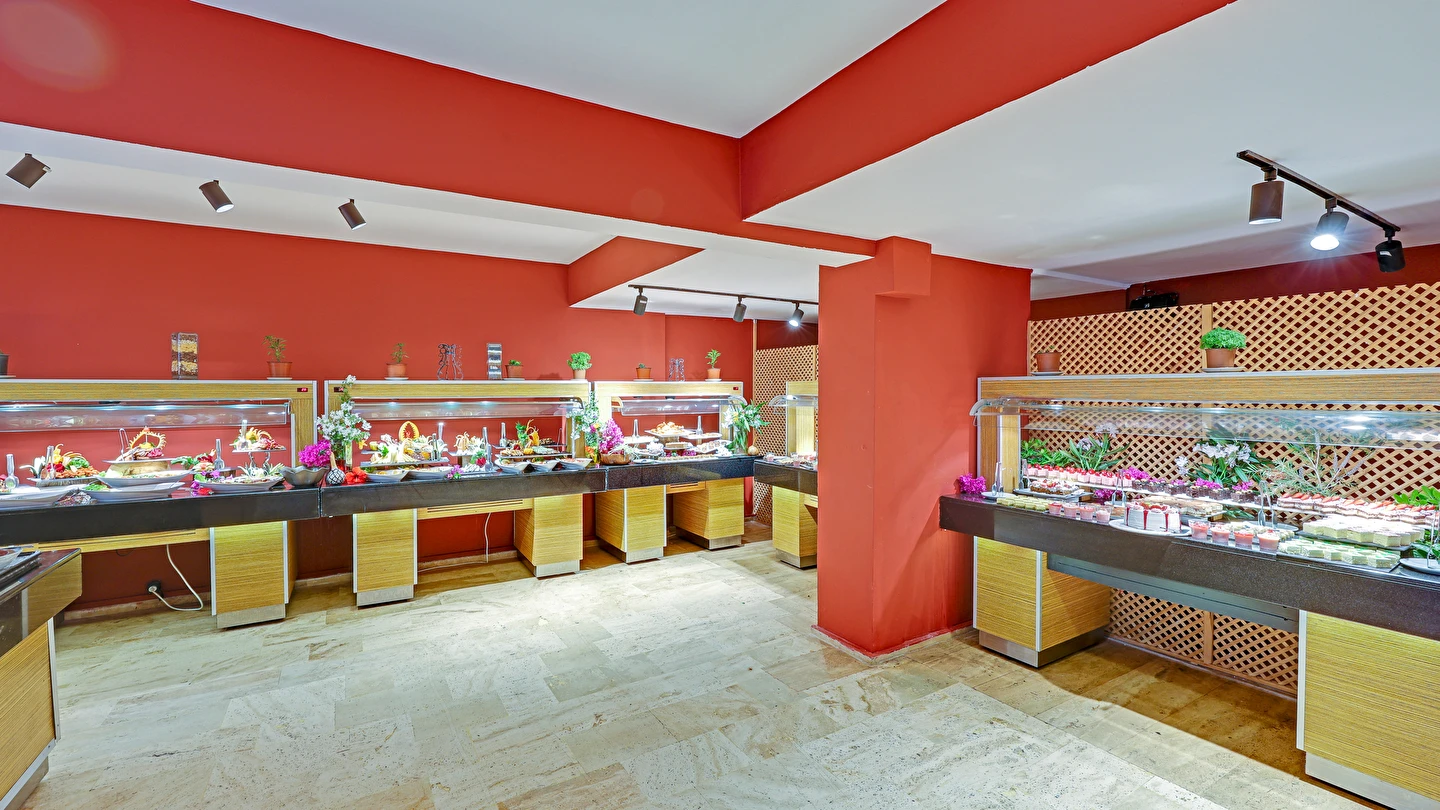 Sabah kahvaltısı, öğle yemeği ve akşam yemeği açık büfe olup, tesisin belirlemiş olduğu markalar dahilinde yerli alkollü ve alkolsüz içecekler 10:00 ile 23:00 saatleri arasında ücretsizdir. Taze sıkılmış meyve suları, şişeli talep edilen alkollü içecekler, yabancı ve marka içecekler ve kokteyller, türk kahvesi ücretlidir.