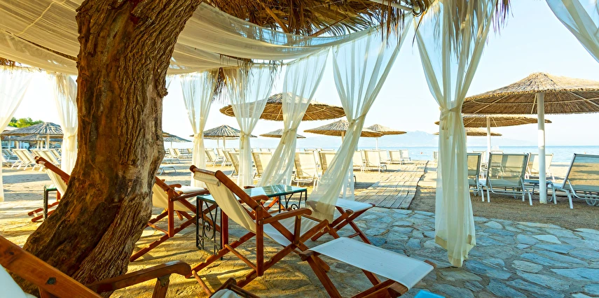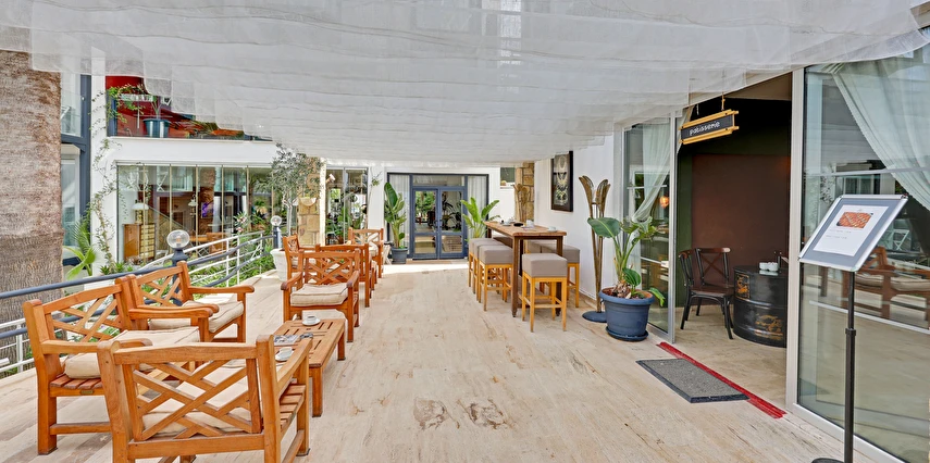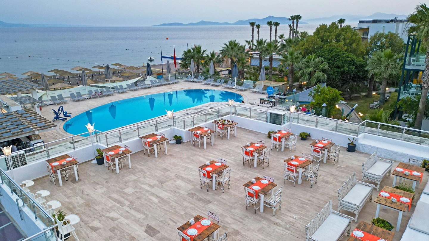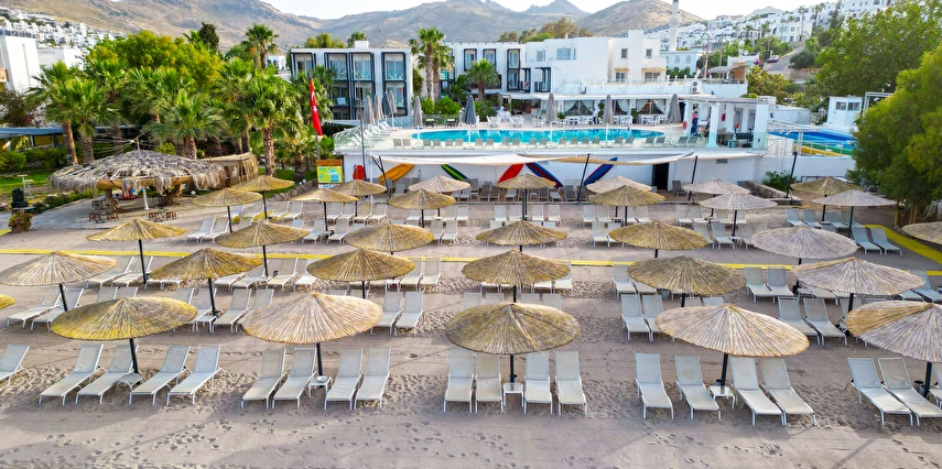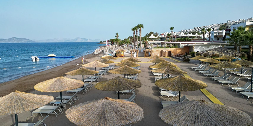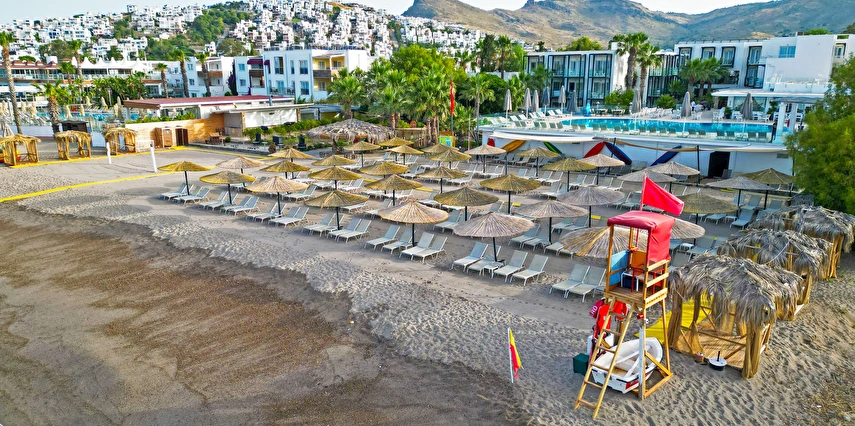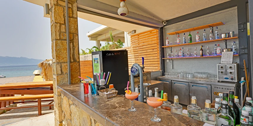 Beach Bar (10:00 ile 18:00 saatleri arasında) (Yerli alkollü ve alkolsüz içecekler ücretsiz, Yabancı ve marka içecekler ve kokteyller extra ücretlidir.)