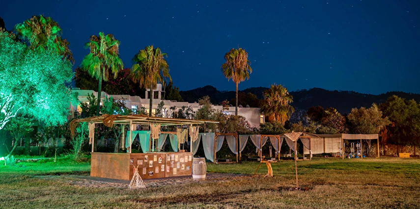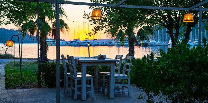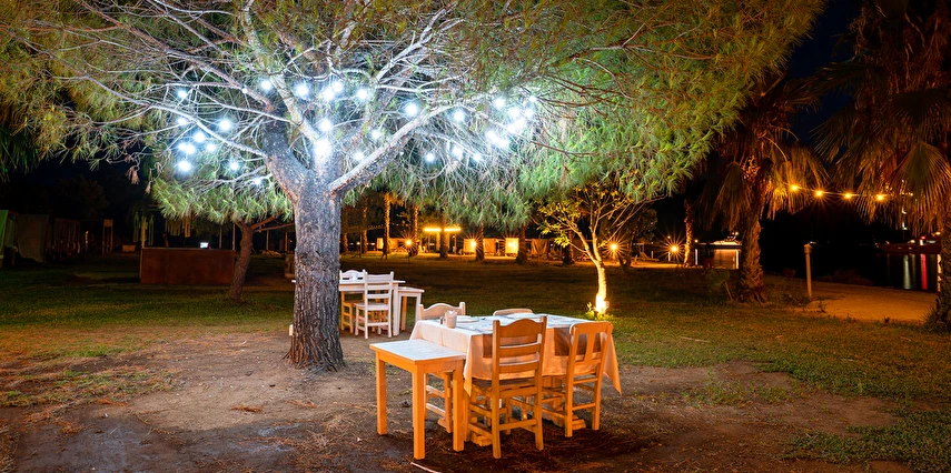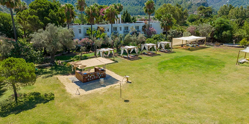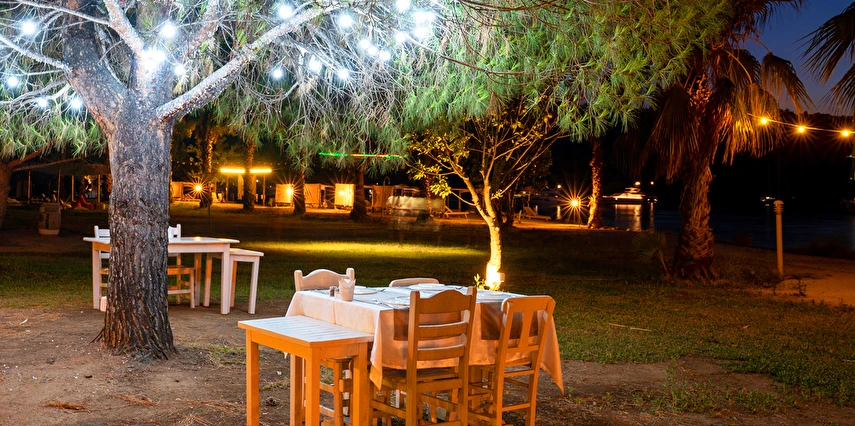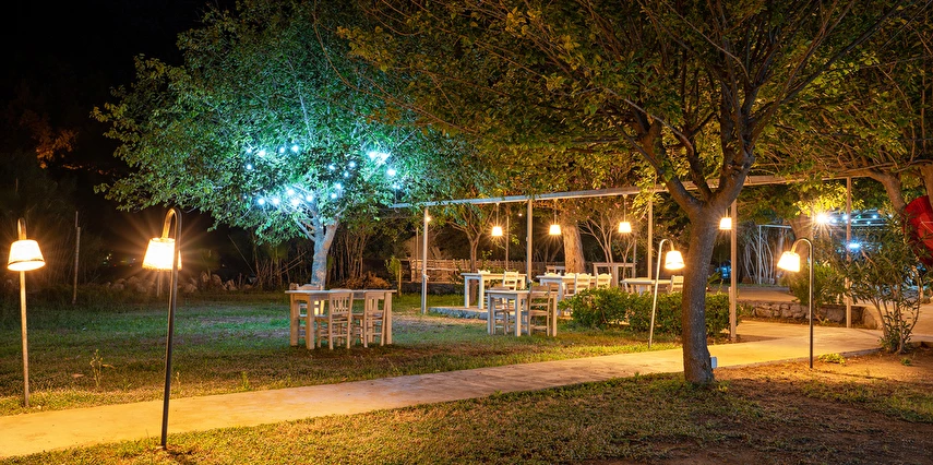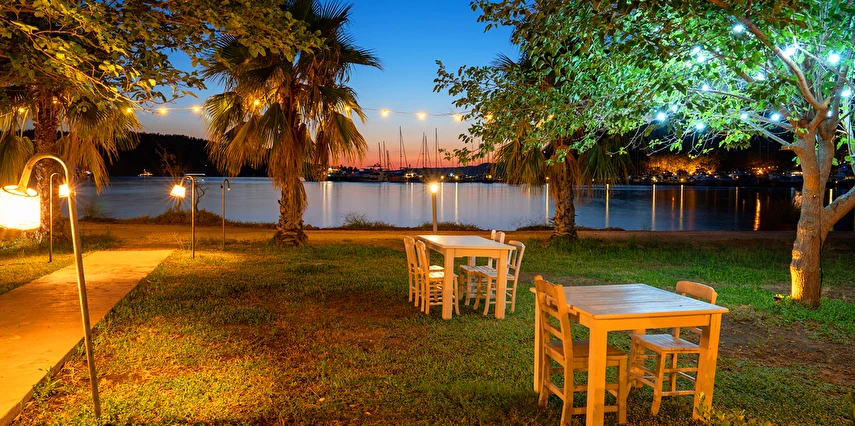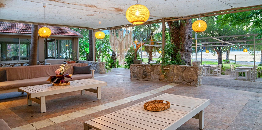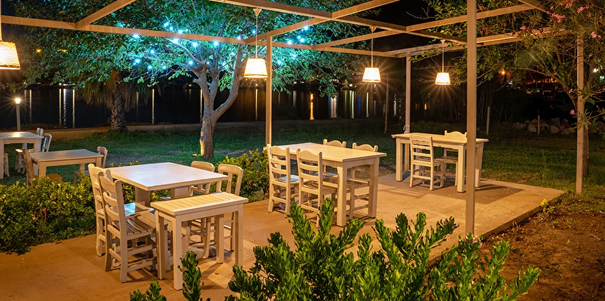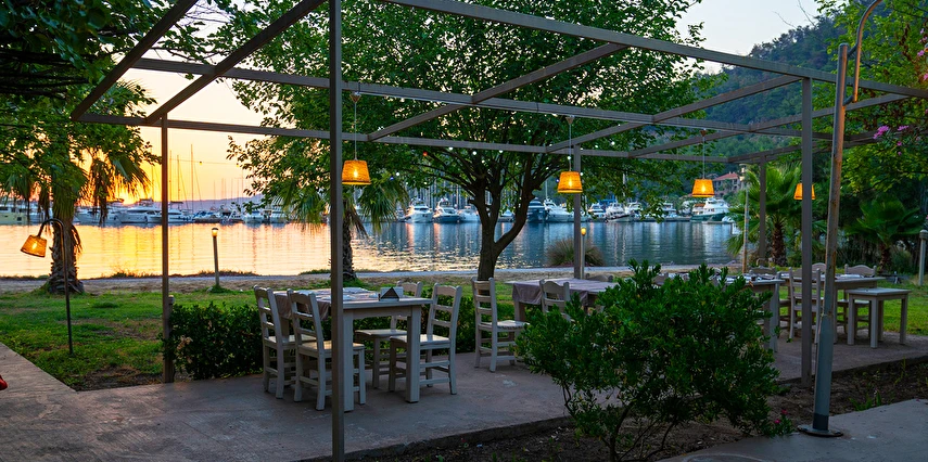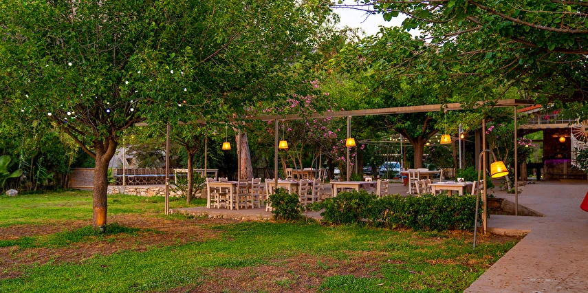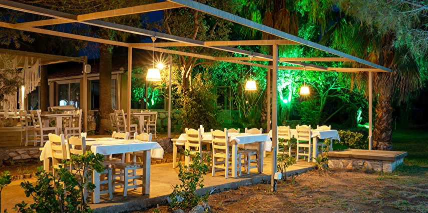 A'la Carte Restoran (19:00 ile 24:00 saatleri arasında)(Ücretli)(Yemek için son sipariş 22:00'dır. 40 kişilik kapasitelidir. Teras ve bahçe de max. 80 kişi kapasite yarım pansiyon misafirlere seçenekli fix menü vey konsept menüler sunulacaktır)
