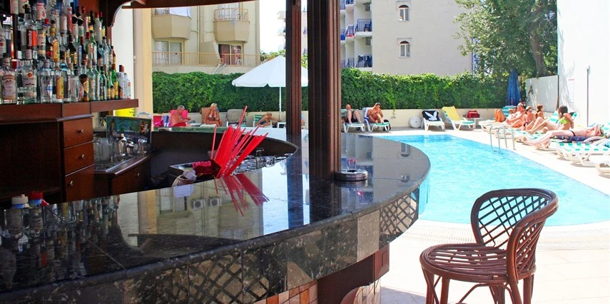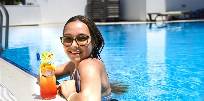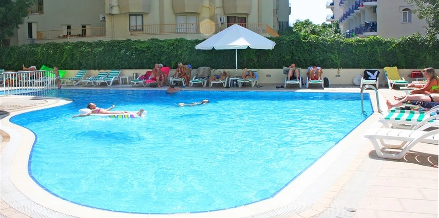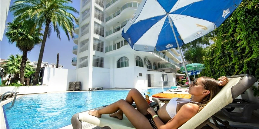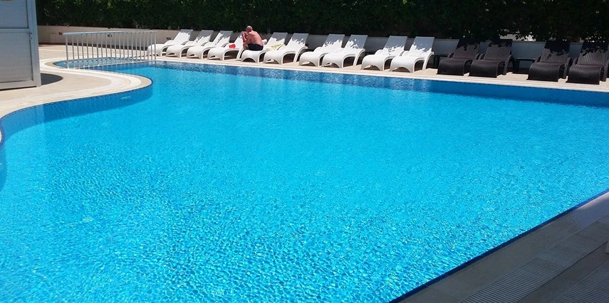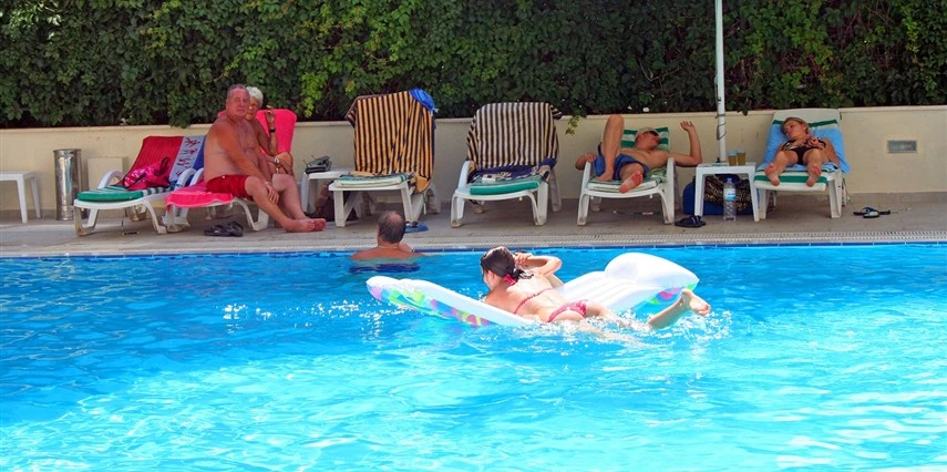 Tesisin havuz başında şezlong - şemsiye, minder ücretsizdir