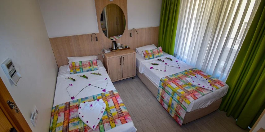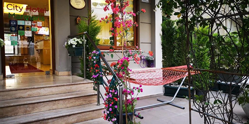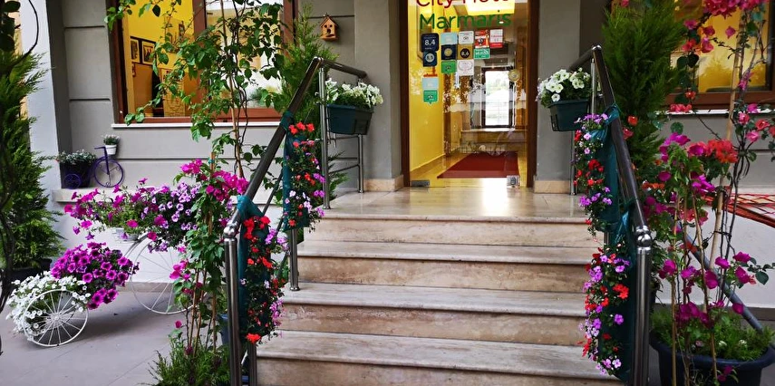 Marmaris merkezde konumlanan City Hotel Marmaris, ev sıcaklığındaki odaları, güler yüzlü personelleri ve doğal güzellikleri ile misafirlerine huzurlu bir tatil vadediyor. Tesisin tüm odalarında; TV, uydu yayını, minibar, klima, kablosuz internet bağlantısı, saç kurutma makinesi, balkon, üç kişilik odalarında şezlonglu teras bulunuyor. Denizin maviliğine ve şehir hayatının eğlencesine yakın konumda bulunan tesisin turunç ve meyve ağaçlarının gölgesinde kahveni yudumlayabilirsin. Sabahları leziz bir kahvaltı servisiyle güne başlayabileceğin tesisin odalarında ve ortak kullanım alanlarında Wi-Fi bulunuyor. Ücretsiz plaja 100 metre uzaklıkta olan tesiste; güneşin tadını çıkarabileceğin açık havuz, minik misafirler için açık çocuk havuzu, şezlonglu terası, ortak TV alanı, kuru temizleme ve leziz tatlar sunan restoran mevcut. Doğal güzellikleri ve kusursuz plajıyla eğlenceli tatillerin vazgeçilmez adresi Marmaris’te bulunan City Hotel Marmaris, ev konforunda sunduğu odaları, güler yüzlü hizmeti ve yüzme havuzu ile Marmaris Otogarı’na 2 km mesafede bulunuyor.