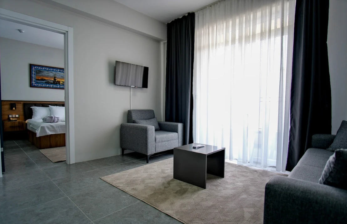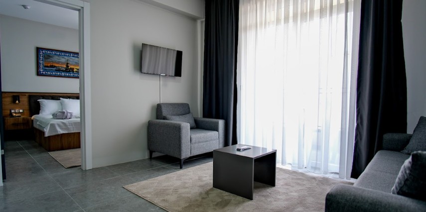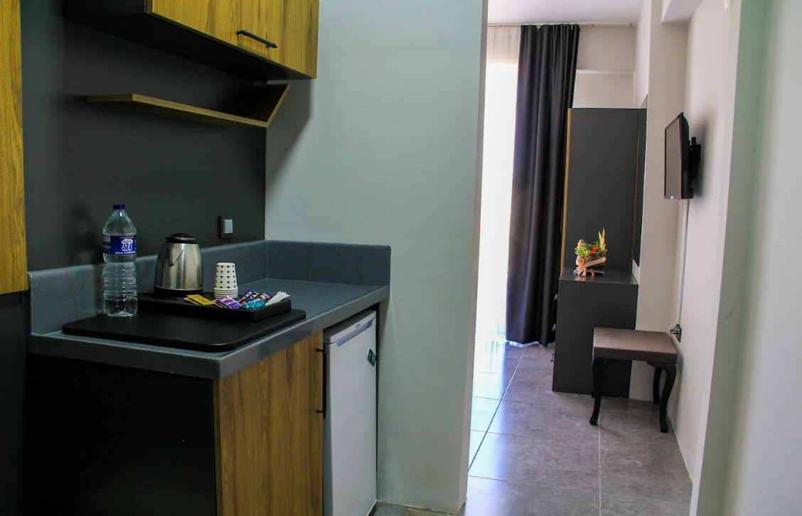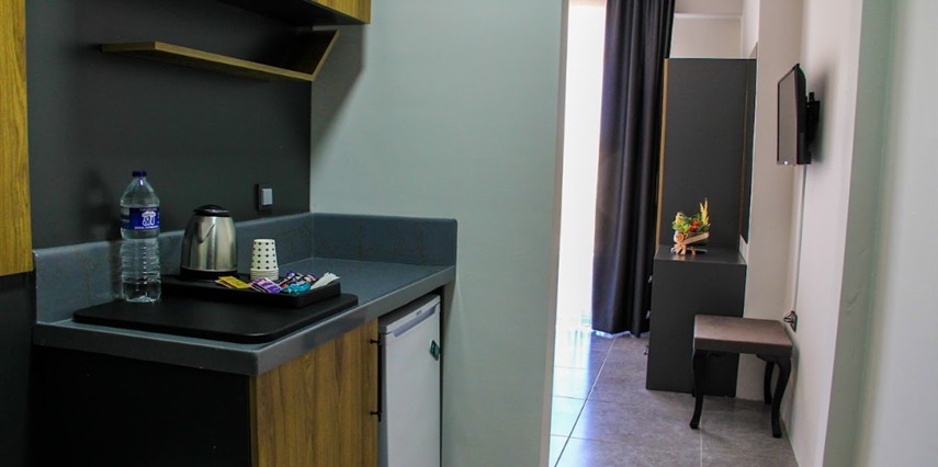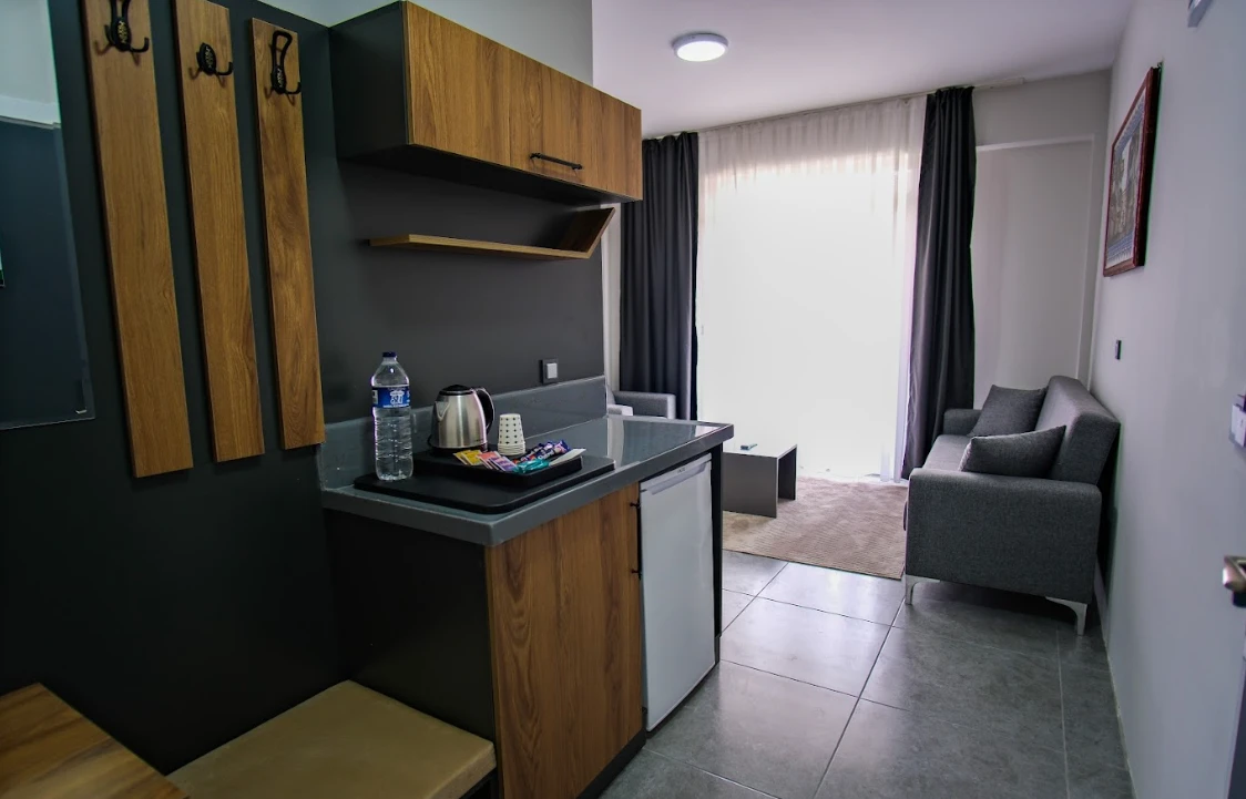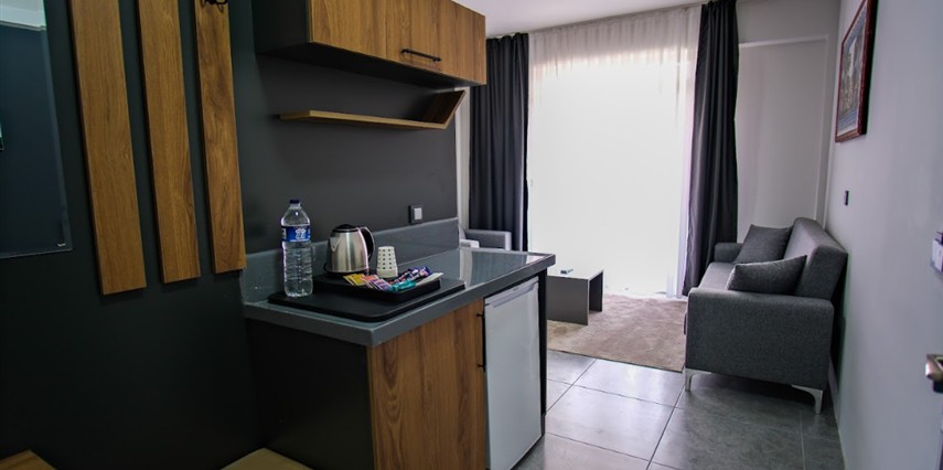 Oda girişinde ikram seti (çay, kahve, bitki çayı ve 1,5 lt su – 1 defaya mahsus ücretsiz)