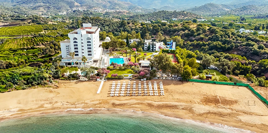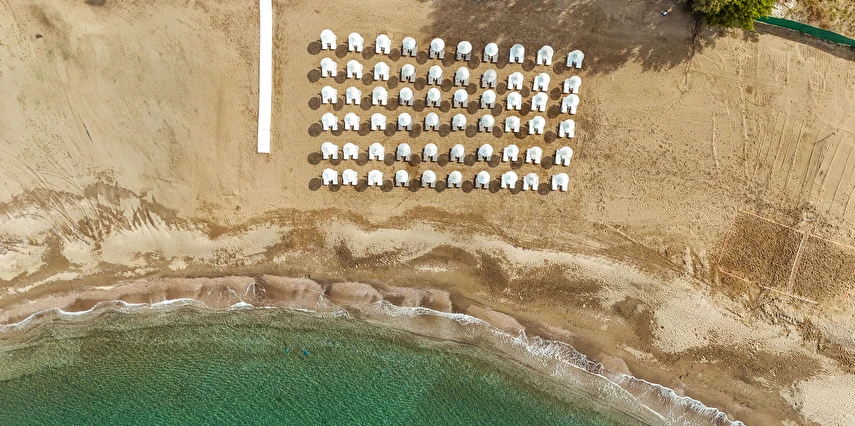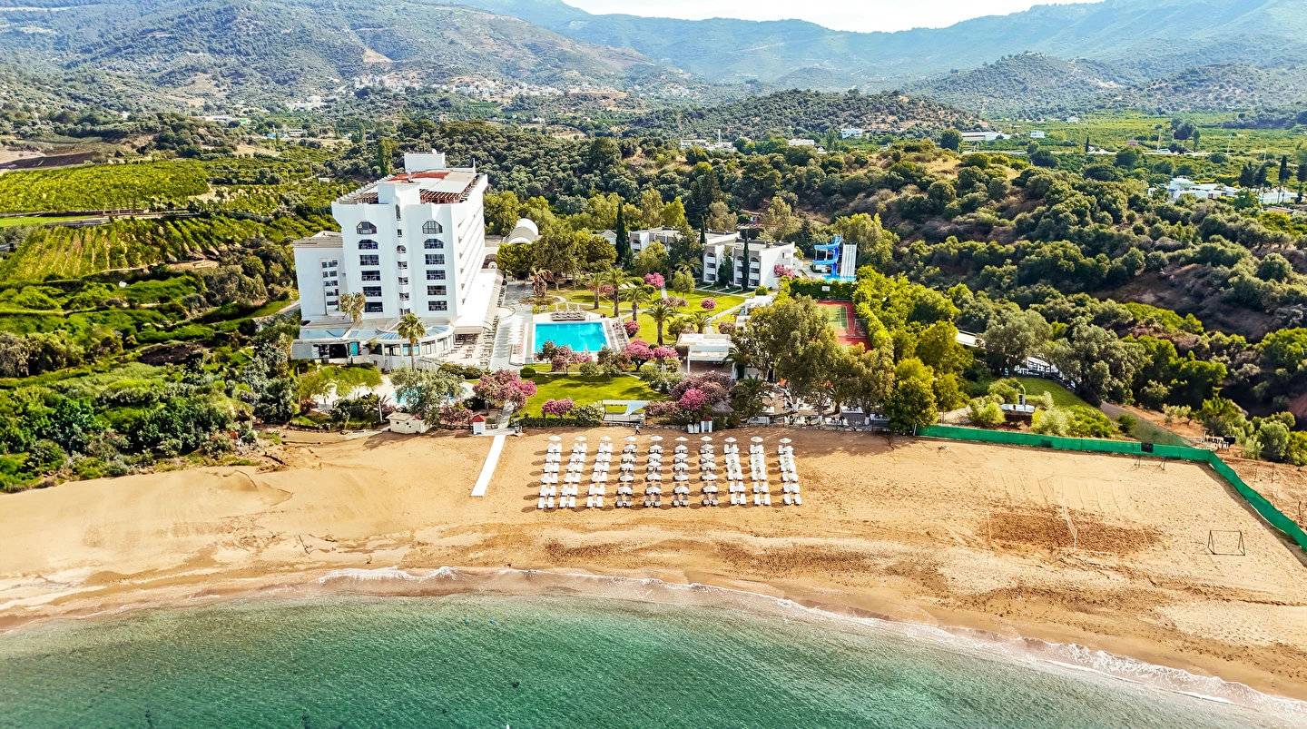 Tesisin, Kesre Koyu’na ve Kuşadası Körfezi’ne hakim yaklaşık 650 metrelik plajı bulunuyor. Tesis, gerektiğinde ve gün içerisinde hijyenik sebeplerden dolayı dezenfekte etmek için kısa süreli olarak kapatılabilir.