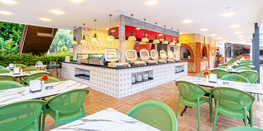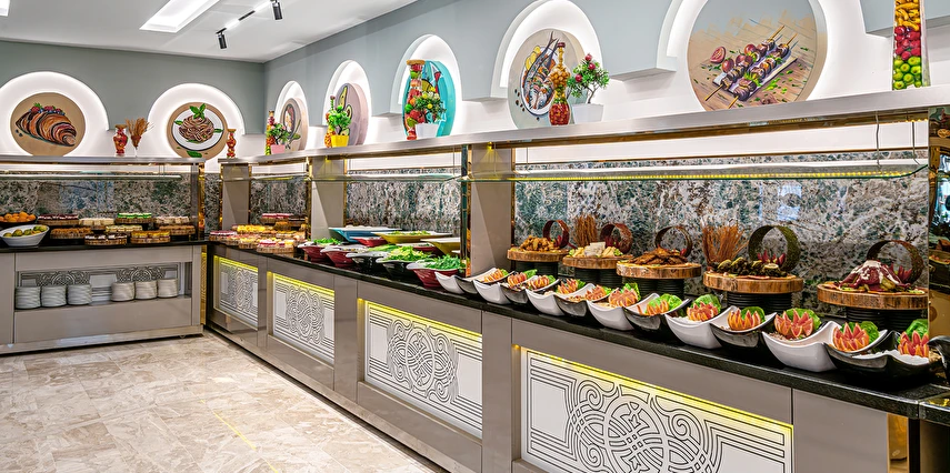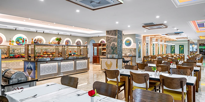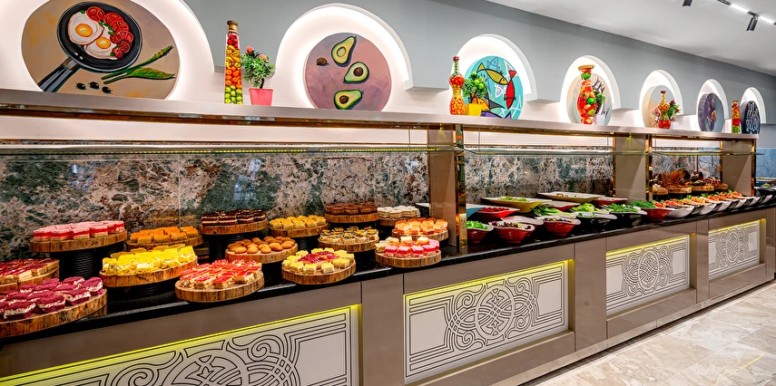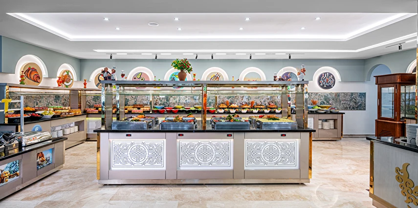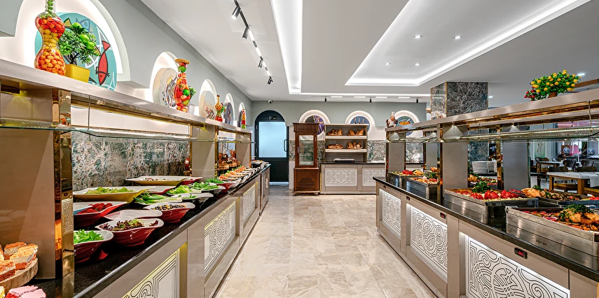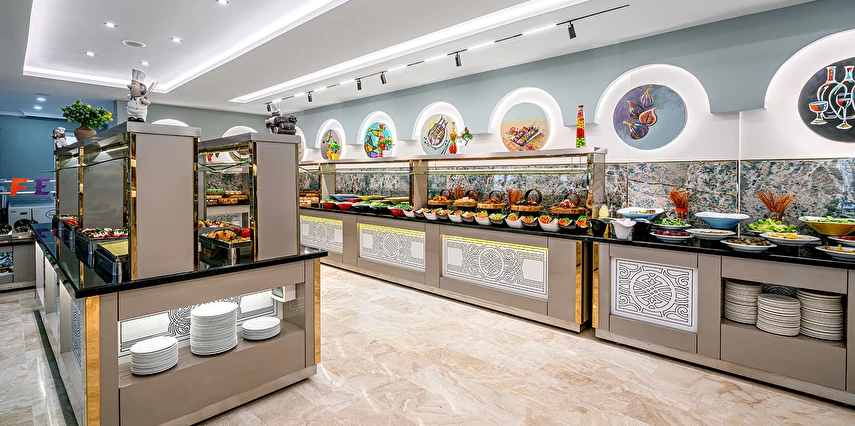 Sabah kahvaltısı öğle ve akşam yemekleri açık büfe olup tesisin belirlemiş olduğu yerli alkollü ve alkolsüz içecekler 11:00 ile 23:00 saatleri arasında ücretsizdir. Bu saatler dışında sabah 11:00'a kadar ücretli olarak sunulmaktadır. Taze sıkılmış Portakal suyu, premium içecekler, İthal İçecekler, Türk kahvesi, Şampanya, Özel Şaraplar, Özel kokteyller, Özel konyaklar ekstra ücretlidir. Konsept dahilindeki tüm içecekler bardakta servis edilir. Şişe ile içecek servis edilmez. Misafirlerin herhangi bir gıda alerjisi var ise resepsiyona bildirmelidir.