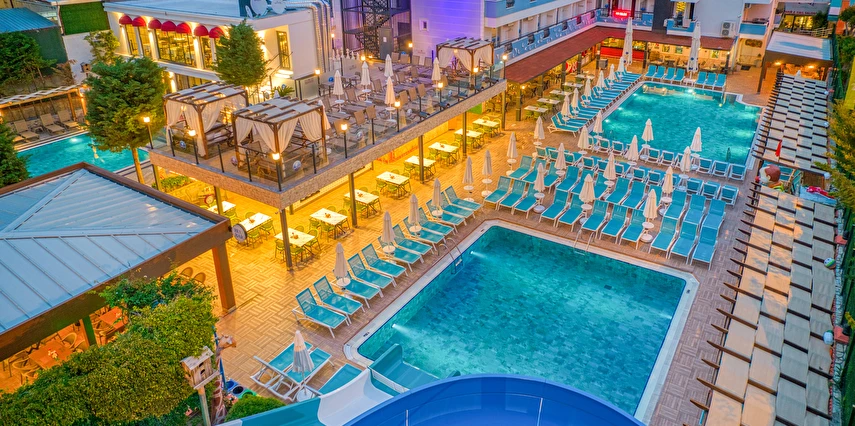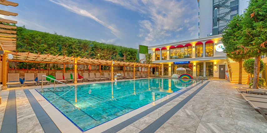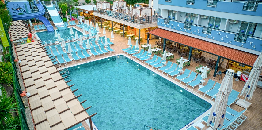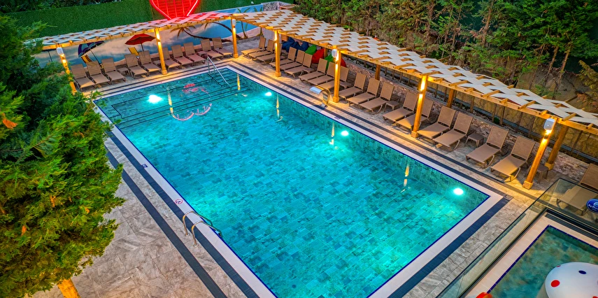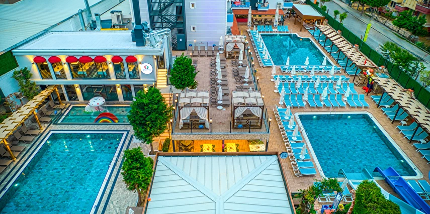 - Tesisin birbirinden bağımsız 4 adet havuzu bulunmaktadır. (ana havuz, kaydırak havuzu, çocuk havuzu, relax havuz), bulunmaktadır. Açık çocuk havuzu güneşten korunaklı olarak yapılmıştır. Kaydırak havuzda 2 adet kaydırağı bulunmaktadır.