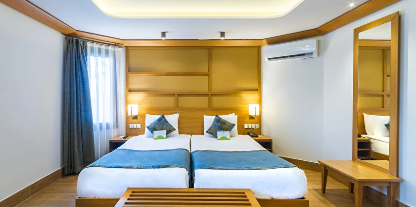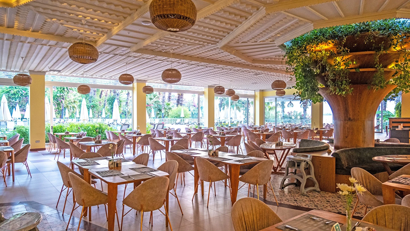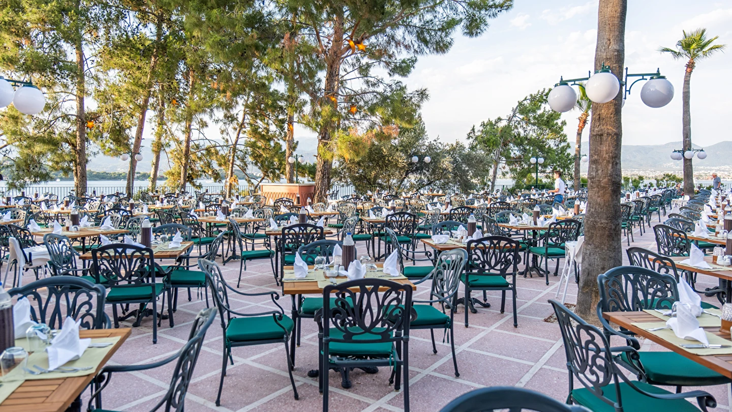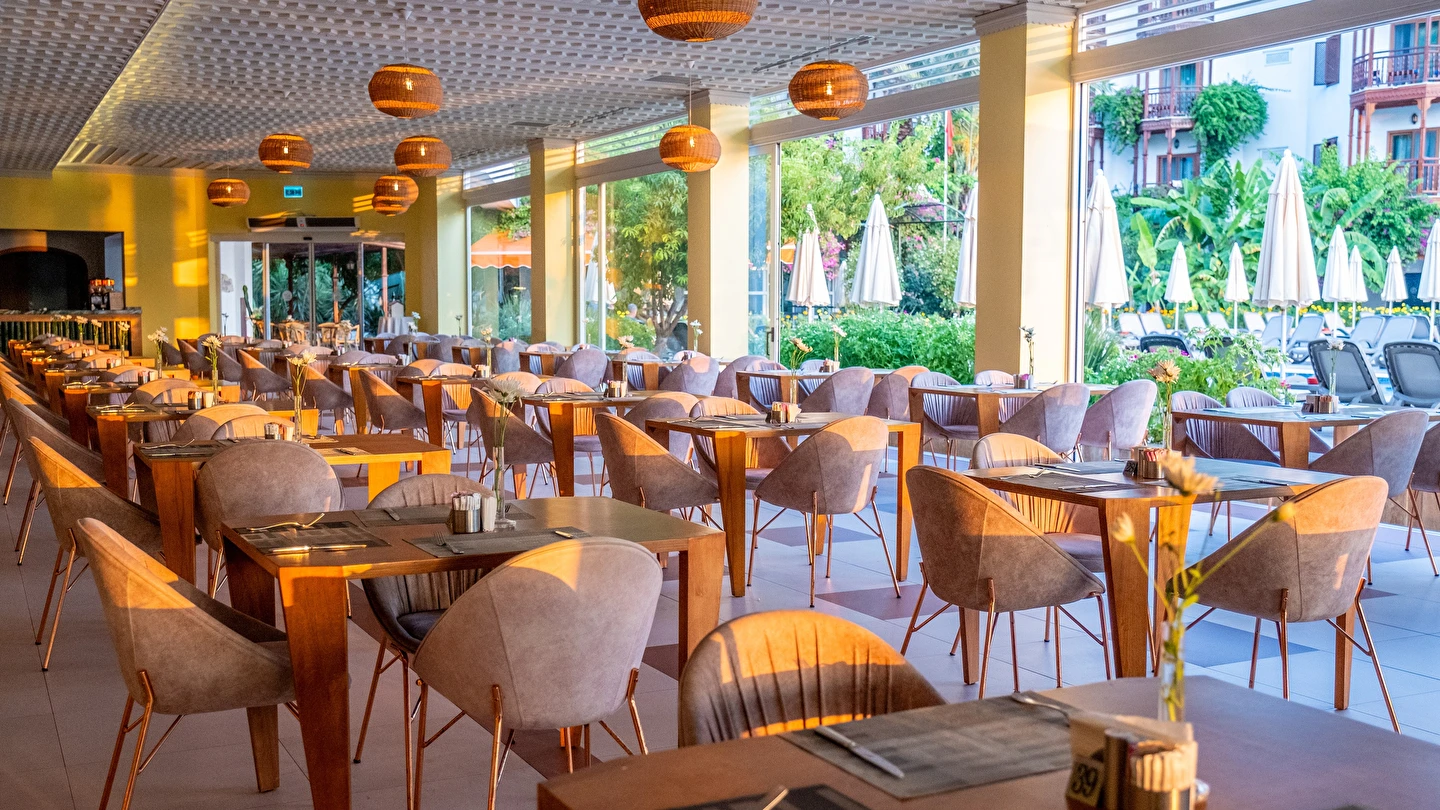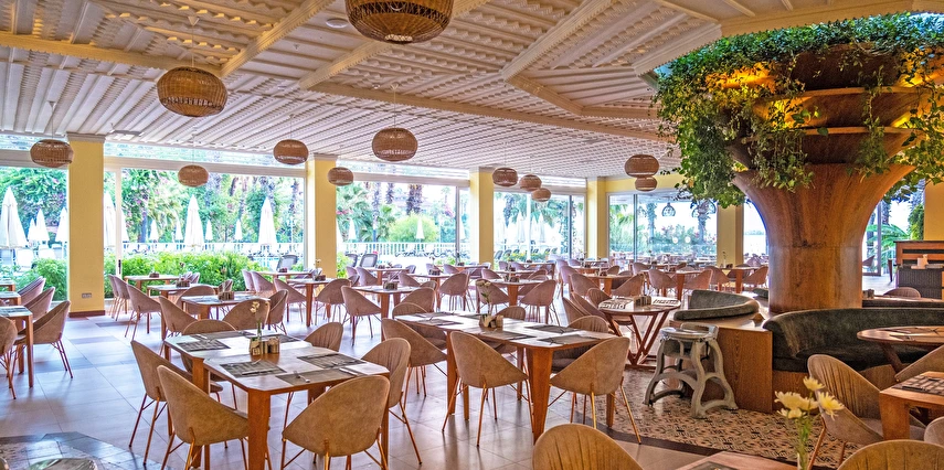 Sabah kahvaltısı, öğle ve akşam yemekleri açık büfe olup tesisin belirlemiş olduğu markalar dahilinde yerli ve bazı yabancı yüksek alkollü ve alkolsüz içecekler 24 saat ücretsizdir. Yerli ve yabancı içeceklerin şişe ile servisi, konsepte dahil olmayan yabancı içecekler ücretlidir.