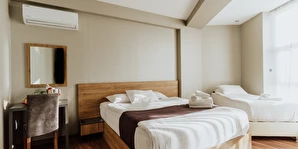 Concept Royal Edirne, modern tasarımı, konforlu odaları ve şehir merkezine yakın konumuyla iş ve turistik seyahatler için ideal bir şehir otelidir. Kısa ve orta süreli konaklamalar için pratik, rahat ve ulaşılabilir bir deneyim sunar