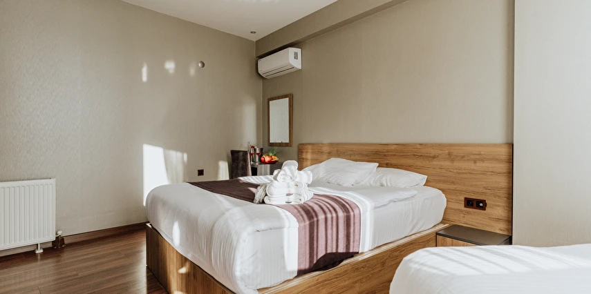 Otelin modern ve konfor odaklı odalarında; rahat yataklar, klima, TV, ücretsiz Wi-Fi ve misafirlerin ihtiyaç duyacağı temel donanımlar yer alır. Günlük şehir temposunun ardından dinlenmek isteyen misafirler için sakin ve düzenli bir atmosfer sunar.