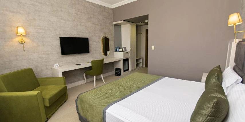 Oda Kahvaltı Konsepti :Konaklama ücretine ücretsiz açık büfe kahvaltı dâhildir. Kahvaltı haricindeki tüm yiyecek ve içecek hizmetleri ücrete tabidir.