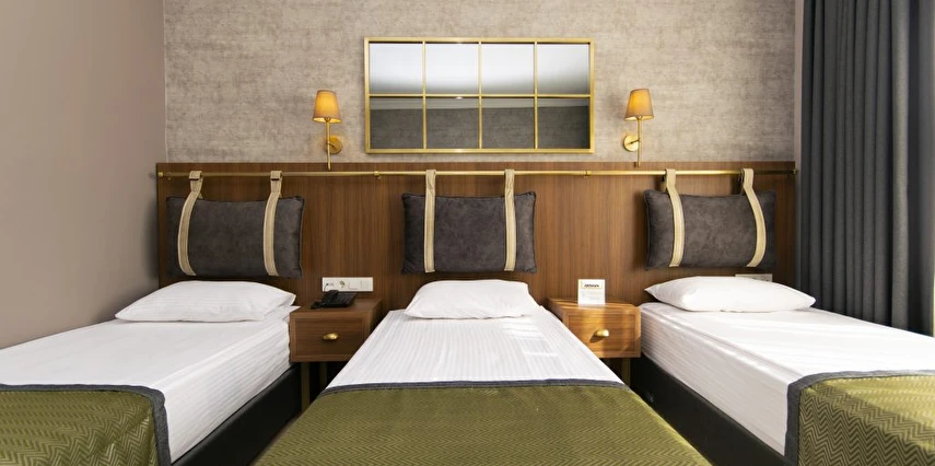 Geniş ve ferah odalar, misafirlerin konforu ve dinlenmesi ön planda tutularak tasarlanmıştır. Tesis; 1 King Suit, 1 Queen Suit, 6 Family Suit, 12 Suit, 8 Family Standart, 50 Standart, 30 Twin and Triple Standart odaları ile toplam 108 oda 260 yatak kapasitesiyle hizmet veriyor.