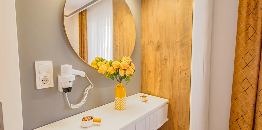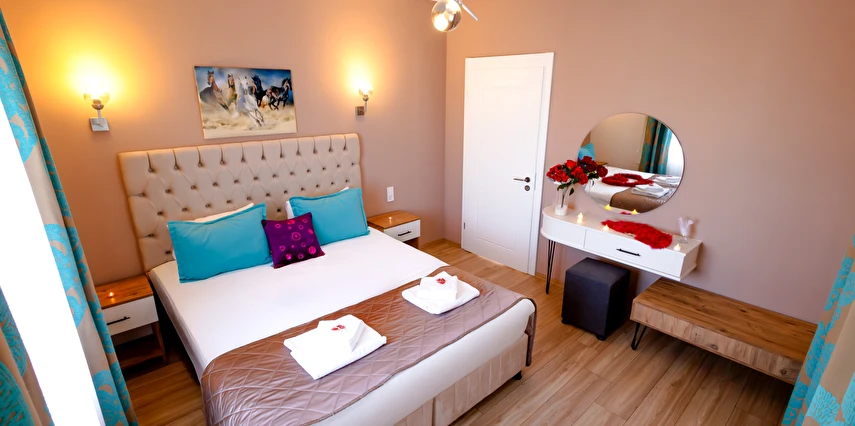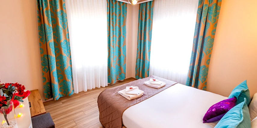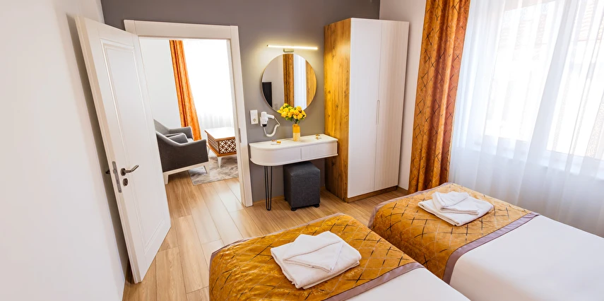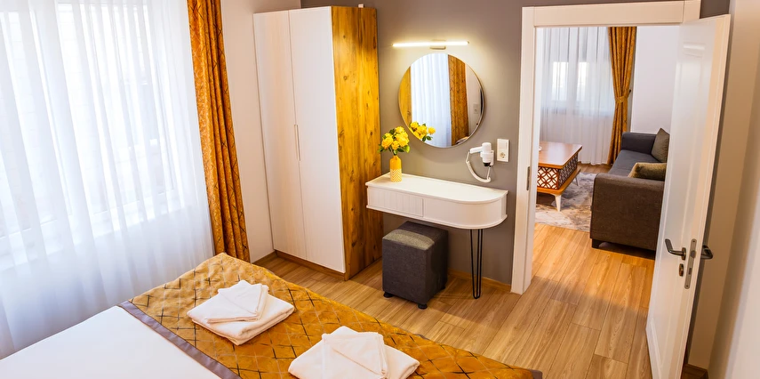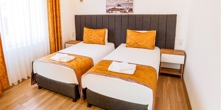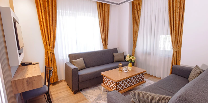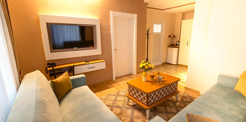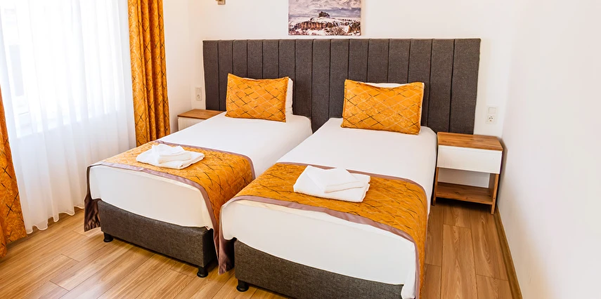 - Şık ve modern tasarıma sahip odalar, termal konfor ve misafir rahatı ön planda tutularak dizayn edilmiştir. Tesis; farklı konaklama ihtiyaçlarına hitap eden oda seçenekleriyle hizmet vermektedir.