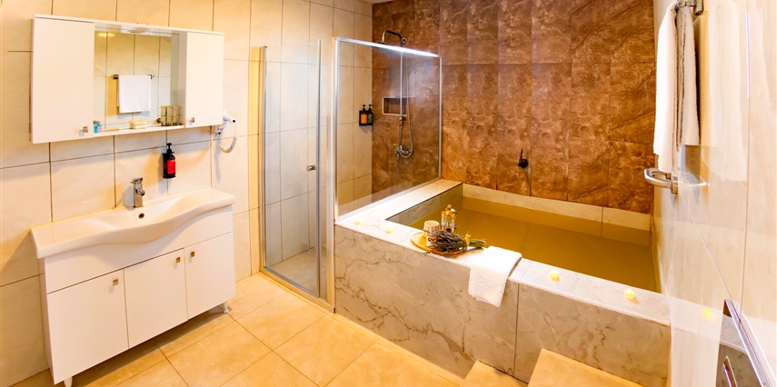- Odaların tamamı suit konseptinde 1+1 şeklinde, 50 metrekare büyüklüğünde olup tesisimizin tüm odalarında bulunan küvetlerde termal suyunu 24 saat kullanabilirsiniz.