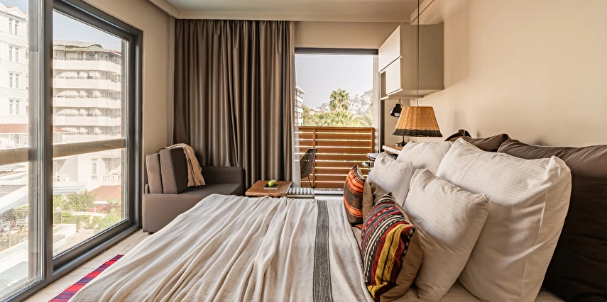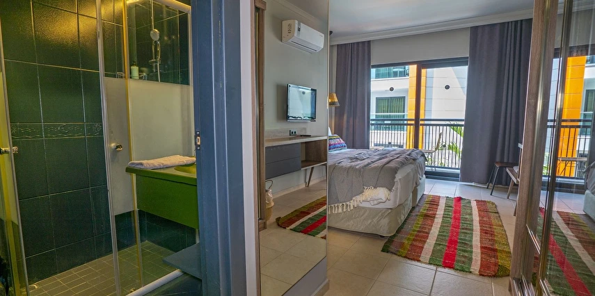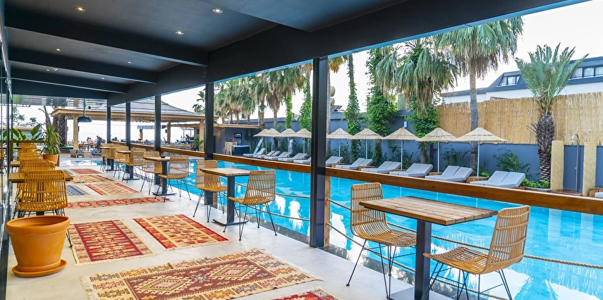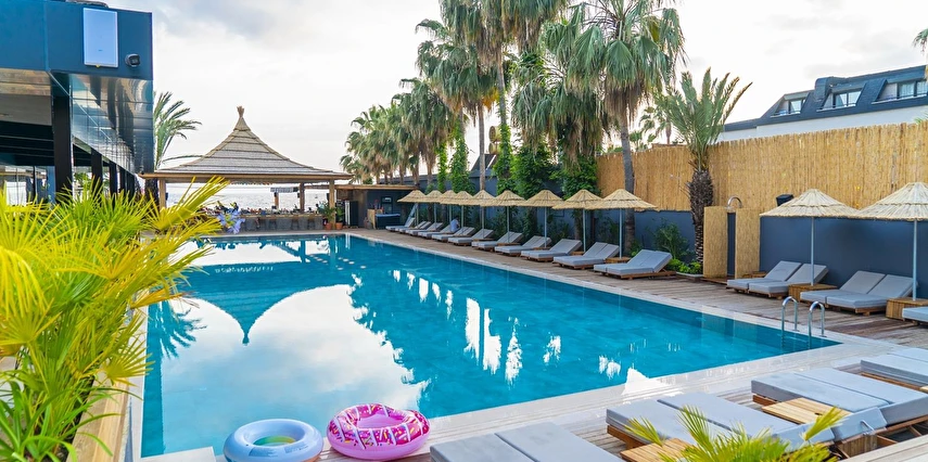 Kleopatra Plajı'nın özel bir bölümünde yer almaktadır.Açık ve kapalı yüzme havuzu olarak seçenekleri bulunmaktadır.Odalarımız klimalı odalsr ve ahşap mobilyalarla dekore edilmiştir. Tüm odalarda tam donanımlı bir mutfak, uydu TV ve özel balkon bulunmaktadır.M Ocean Restaurant'ta servis edilen Türk lezzetlerinin ve uluslararası yemeklerin tadını bahçede çıkarabilirsiniz. Ayrıca Sushi Bar da vardır.Misafirlerimiz fitness da formlarını koruyabilirler.Ayrıca her gece, eğlence ekibi tarafından Türk geceleri ve sihirbazlık gibi gösteriler düzenlenmektedir.