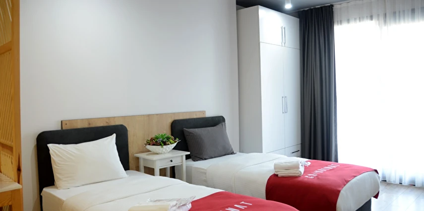 İzmir'in ilk ve tek deluxe sınıfında bulunan Coordinat Suits, modern mimarisiyle ve tasarım odalarıyla siz değerli misafirlerimize hizmet vermektedir. Ücretsiz olarak sunmuş olduğumuz sauna, jakuzi, tam donanımlı spor salonu, kütüphane, bilardo ve masa tenisi salonu, playstation salonumuz ile hizmet vermekteyiz. Geniş tip odalarımız ve uygun fiyat politikasıyla siz değerli misafirlerimizi bekliyoruz. İskandinav tasarımına göre döşenmiş olan yeni evde eşyaların tamamı da yenidir. İzmir’in Bornova ilçesinin en kolay ulaşımı olan bölgelerinden biridir.