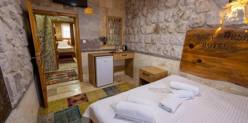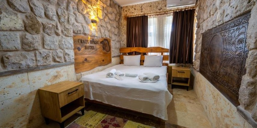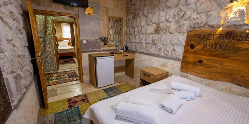 Crazy Horse Hotel, Kapadokya’nın eşsiz coğrafyası ve tarihi atmosferiyle iç içe, Nevşehir’in Ortahisar ilçesinde yer alan keyifli bir otelidir. Bölgenin merkezine yakın konumuyla Göreme Açık Hava Müzesi, peri bacaları ve vadilere kolay ulaşım imkânı sunar; doğa ve keşif tutkunları için ideal bir başlangıç noktasıdır.