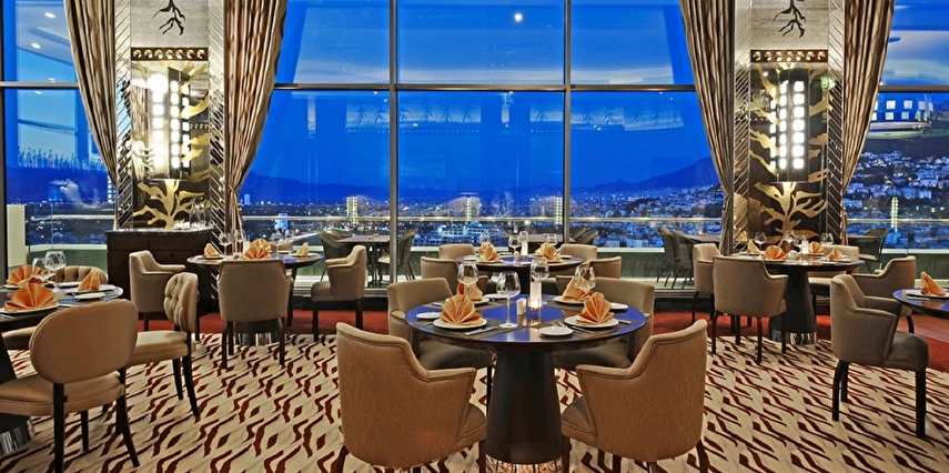 Dekorasyonu ve eşsiz Bursa manzarası ile bu büyüleyici ortam , tanınmış şeflerin hazırladığı uluslararası mutfağın en prestijli yemeklerinden oluşan "Fine Dining" tarzı ile lezzetlerin de zirvesini temsil ediyor.