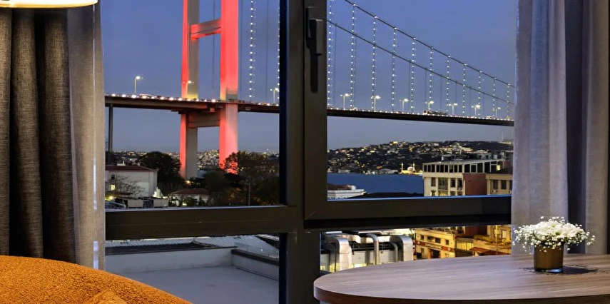 Dolmabahçe Sarayı, Galataport, Karaköy, Sultanahmet, Kapalı Çarşı, Ayasofya ve Taksim Meydanı'na sadece kısa bir sürüş mesafesindeyiz. Ayrıca, tüm popüler gece hayatı destinasyonları, lüks restoranlar, gece kulüpleri, alışveriş bölgeleri ve tarihi yerler konumumuza arabayla beş ila on dakika uzaklıktadır. Otelimizden Ortaköy Camii, Etz Ahayim Sinagogu ve Agios Fokas Rum Ortodoks Kilisesi'ne de yürüme mesafesi ile çok yakınız. Misafirlerimize unutulmaz lüks SPA olanakları, 24 saat açık fitness tesisi ve ücretsiz yüksek hızlı wifi bağlantısı sunuyoruz. Çatı restoranımızda bize katılın ve muhteşem boğaz manzarası eşliğinde kahvaltı ve akşam yemeğinin tadını çıkarın.