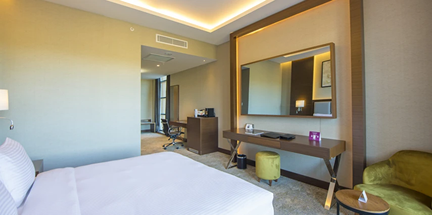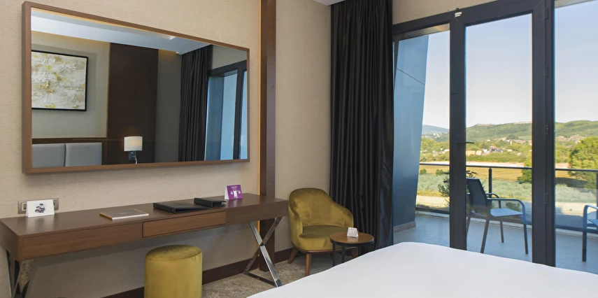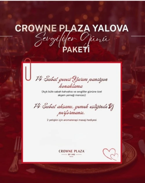 Daha Fazla GösterCanlandırıcı kaplıcalarıyla ünlü Yalova'nın kalbinde lüksün huzurla buluştuğu Crowne Plaza Yalova'ya hoş geldiniz. Otelimiz, tarihi şehir merkezine arabayla sadece 10 dakikalık mesafede ve hareketli mağazalara ve rahat kafelere elverişli bir yakınlıkta gençleştirici bir kaçamak sunmaktadır. Sabiha Gökçen Uluslararası Havaalanı'na (SAW) yaklaşık 39 kilometre uzaklıktayız ve ikonik Osmangazi Köprüsü'nden 25 dakikalık hızlı bir yolculuk sizi İstanbul'a götürecek Crowne Plaza Yalova'da her türlü ihtiyacınızı karşılıyoruz. Sofistike konferans tesislerimiz arasında, büyük ziyafetlerden tiyatro tarzı sunumlara kadar çeşitli etkinlikler için 400 kişiye kadar misafir ağırlayabilen, ücretsiz yüksek hızlı internete sahip üç çok yönlü oda bulunmaktadır. Rahatlamak için son teknoloji ürünü Fitness Merkezimizin keyfini çıkarın, dinlendirici Saunada gevşeyin veya ısıtmalı Kapalı Havuzda yoğun tempolu yaşamın izlerinden kurtulun. Otel bünyesindeki restoranımız nefis yerel ve uluslararası yemekler sunarken, şık Lobi Barımız bir içkiyle dinlenmek için mükemmel bir mekandır. Konfor ve rahatlığınızı sağlamaya kendimizi adadık. Özenli personelimiz, konaklamanızı hem sorunsuz hem de unutulmaz kılmak için her türlü talebinize yardımcı olmak için buradadır. Ziyaretiniz ister iş ister tatil amaçlı olsun, Crowne Plaza Yalova'daki her an kalıcı bir izlenim bırakacak şekilde tasarlandı.