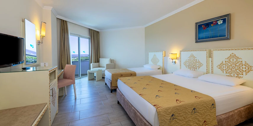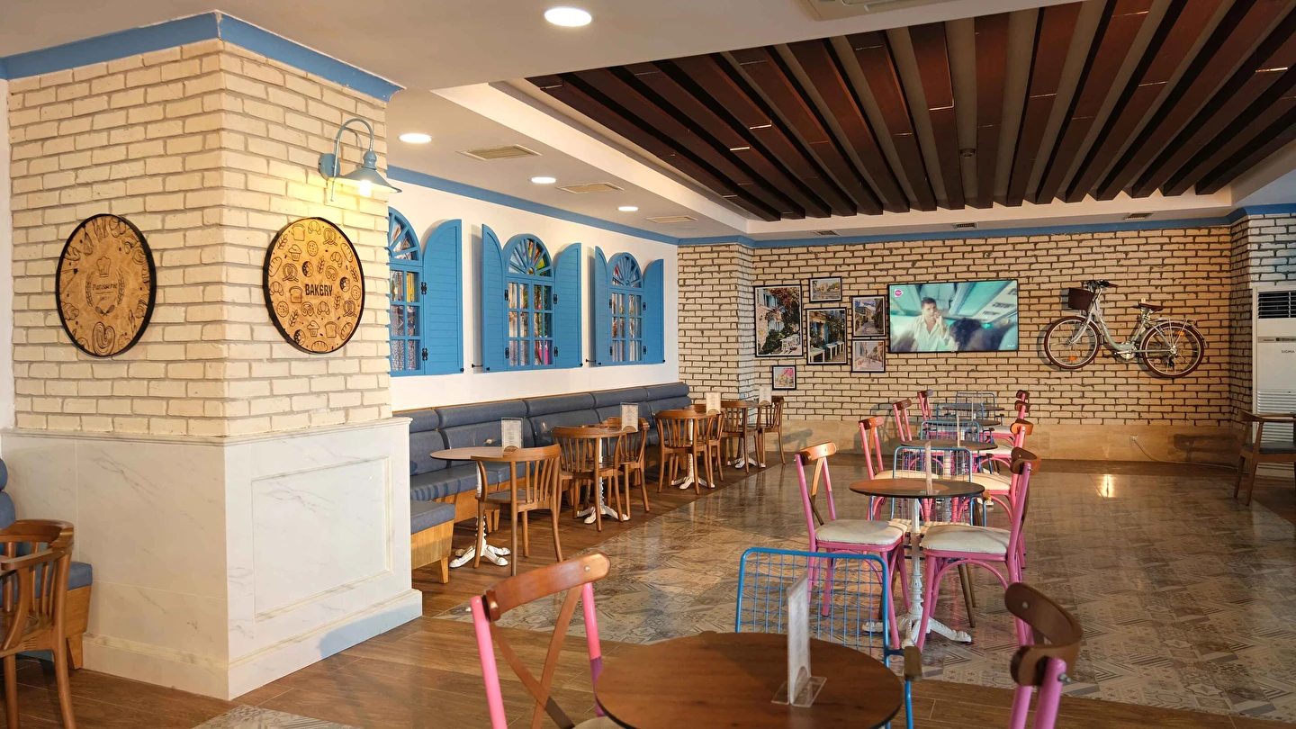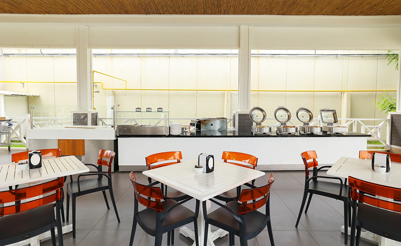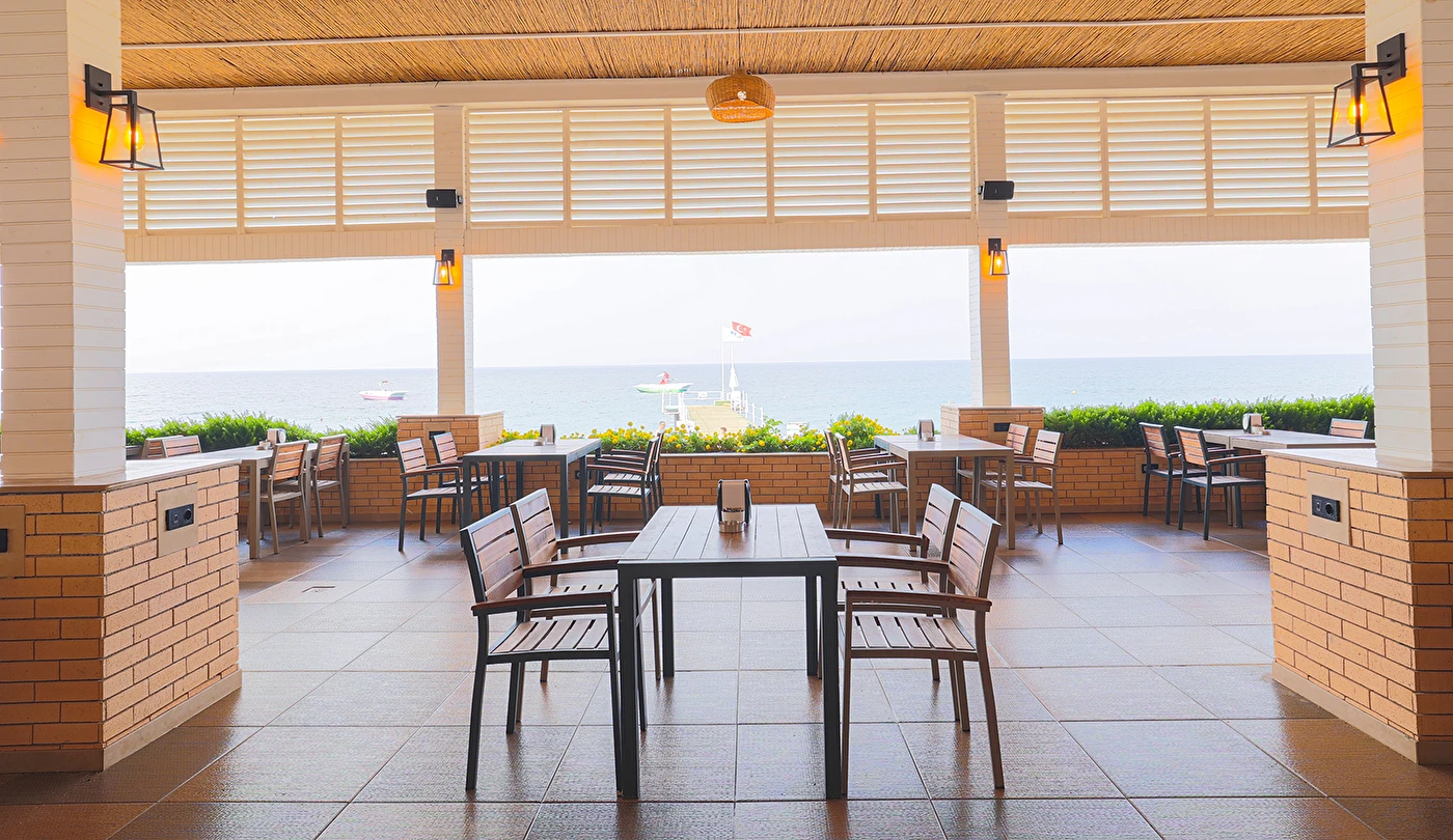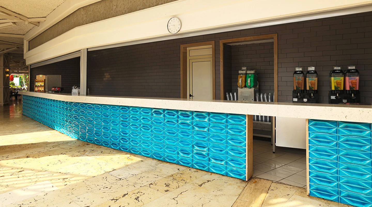 Sabah kahvaltısı, öğle ve akşam yemekleri açık büfe olup tesisin belirlediği markalar dahilinde yerli alkollü ve alkolsüz içecekler 24 saat arasında ücretsizdir. Uluslararası yöresel kahveler ücretsizdir. Taze sıkılmış sebze, meyve suları ve enerji içecekleri ücretlidir.